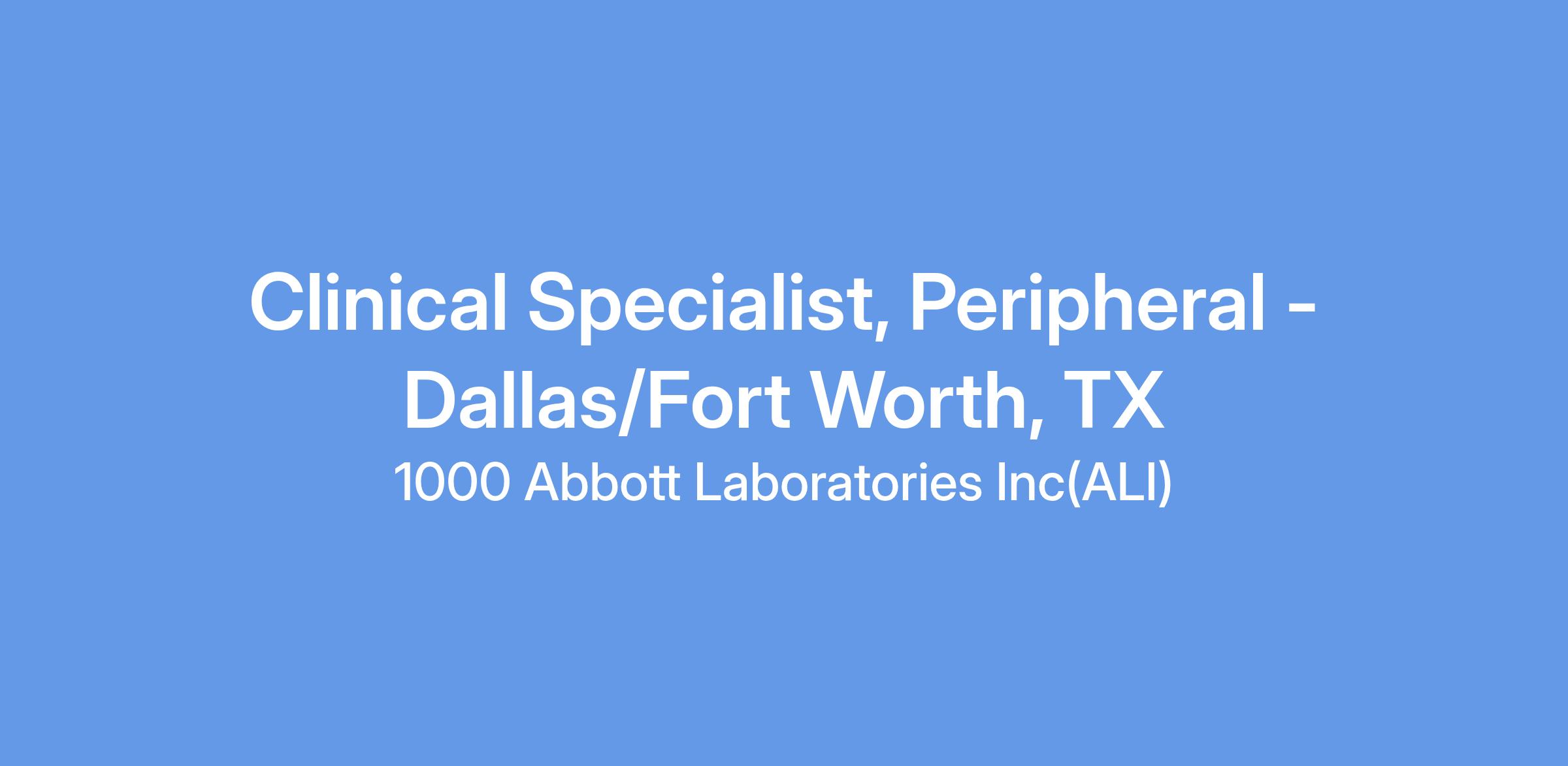 We currently have an opportunity for a Clinical Specialist, Peripheral, in Dallas/Fort Worth, TX. The Clinical Specialist will primarily be responsible for case planning, case support coverage, and product pull- through throughout the designated territory, and throughout the Region as needed. The Clinical Specialist will promote Vascular products through education, service and training of customers in the hospital setting. The Clinical Specialist will provide clinical education and sales support in order to assist in achieving projected sales goals, increasing sales revenues within assigned product lines, and increasing market share. This position will have a heavy focus on Vessel Closure.