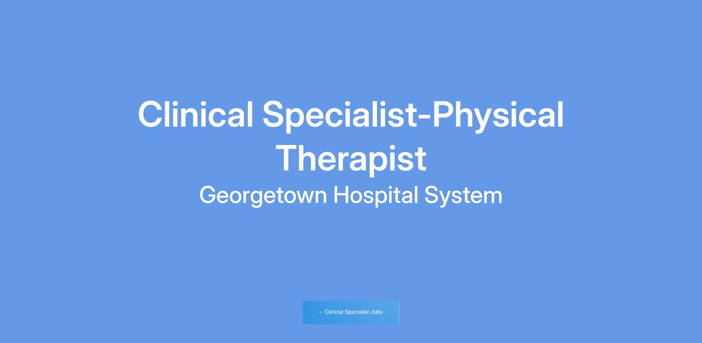 Clinical Specialist/Physical Therapist OutpatientAre you passionate about quality and committed to excellence? Consider joining our Tidelands Health team. As our region's largest health care provider, we are also one of our area's largest employers. More than 2,500 team members at more than 70 Tidelands Health locations bring our healing mission to life each day.