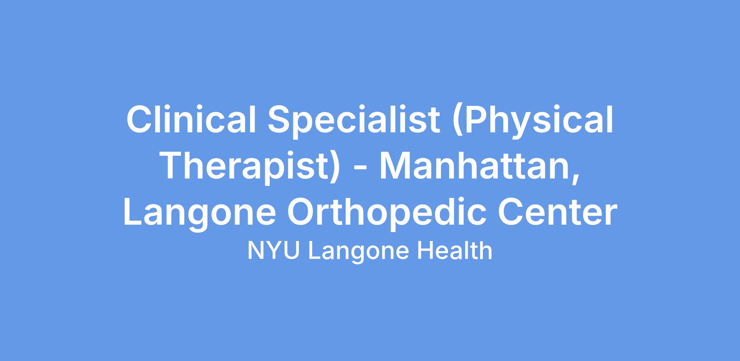 We have an exciting opportunity to join our team as a Clinical Specialist (Physical Therapist) - Manhattan, Langone Orthopedic Center.