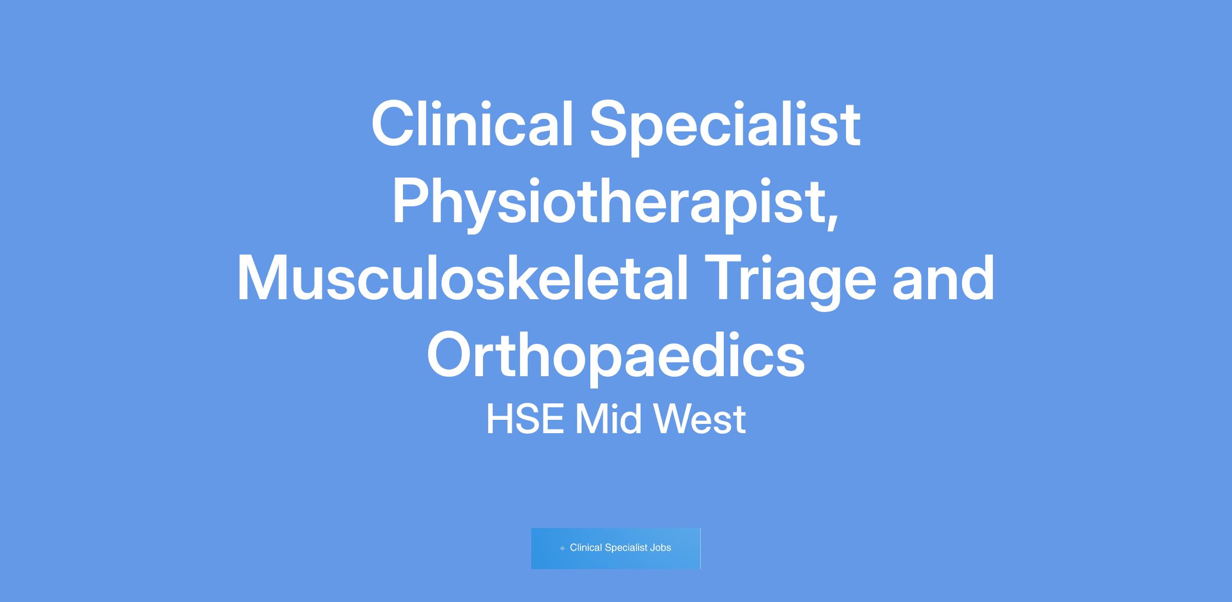 Clinical Specialist Physiotherapist, Musculoskeletal Triage and Orthopaedics