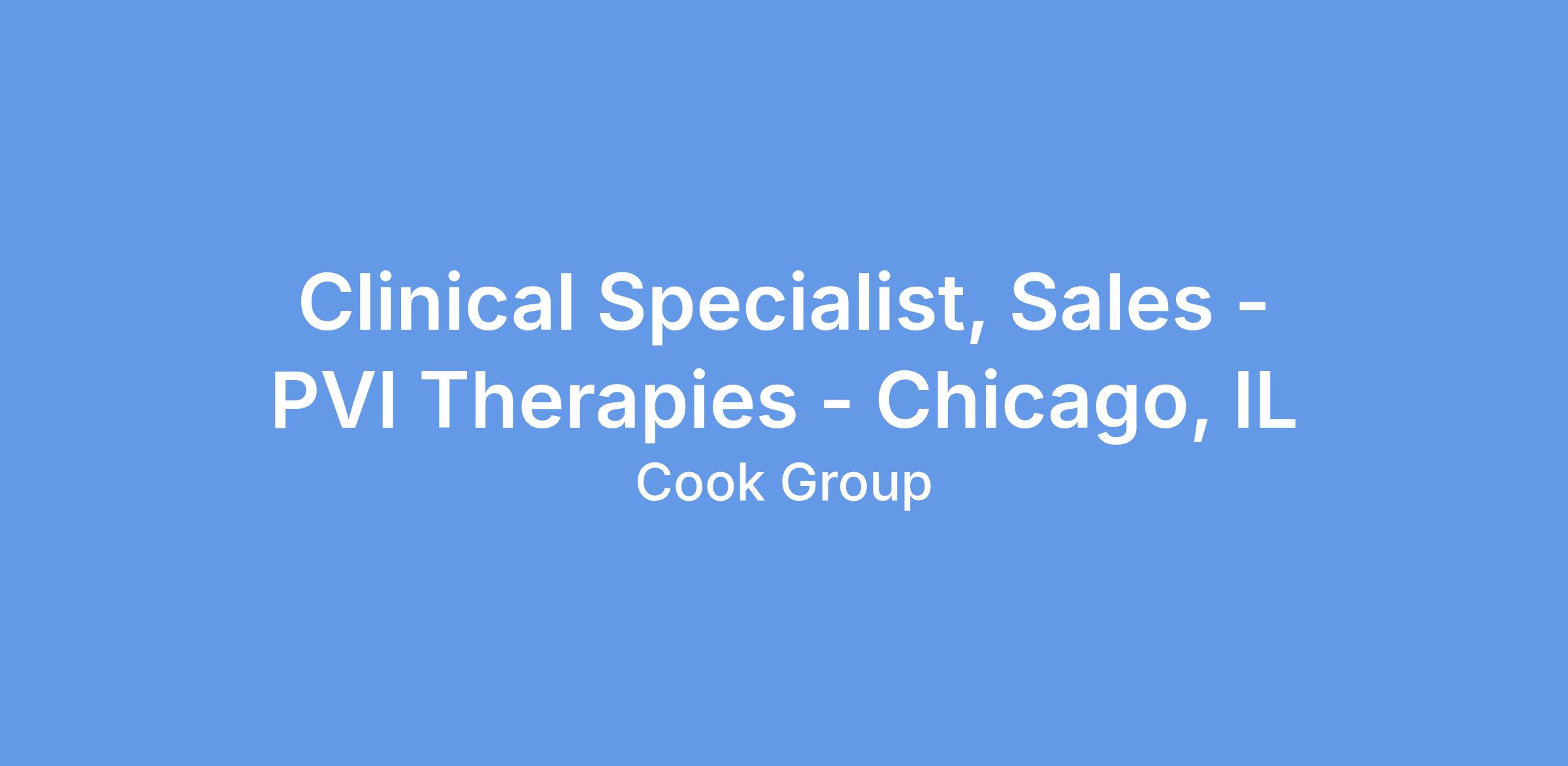 Clinical Specialist, Sales - PVI Therapies - Chicago, IL