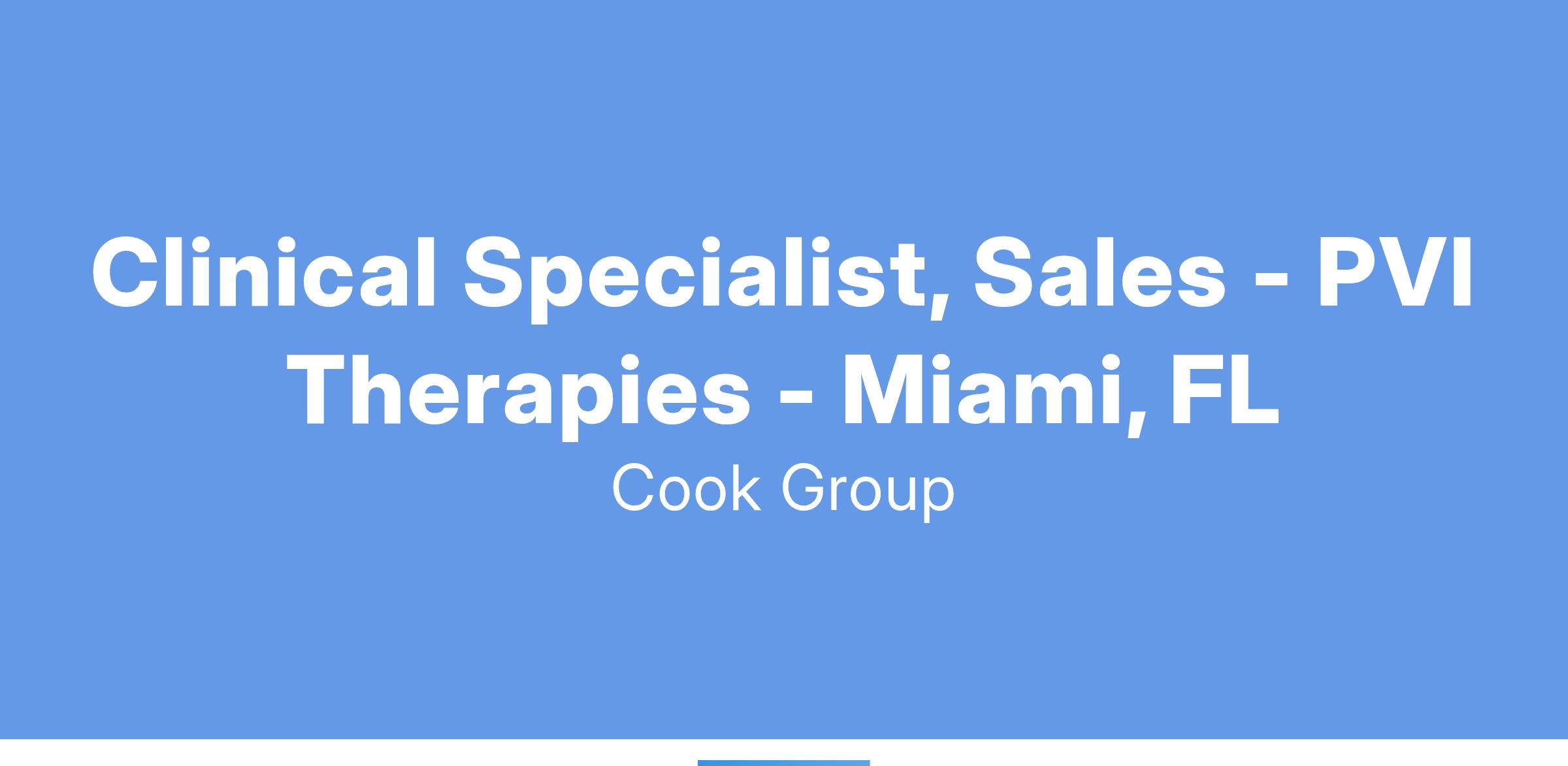Clinical Specialist, Sales - PVI Therapies - Miami, FL