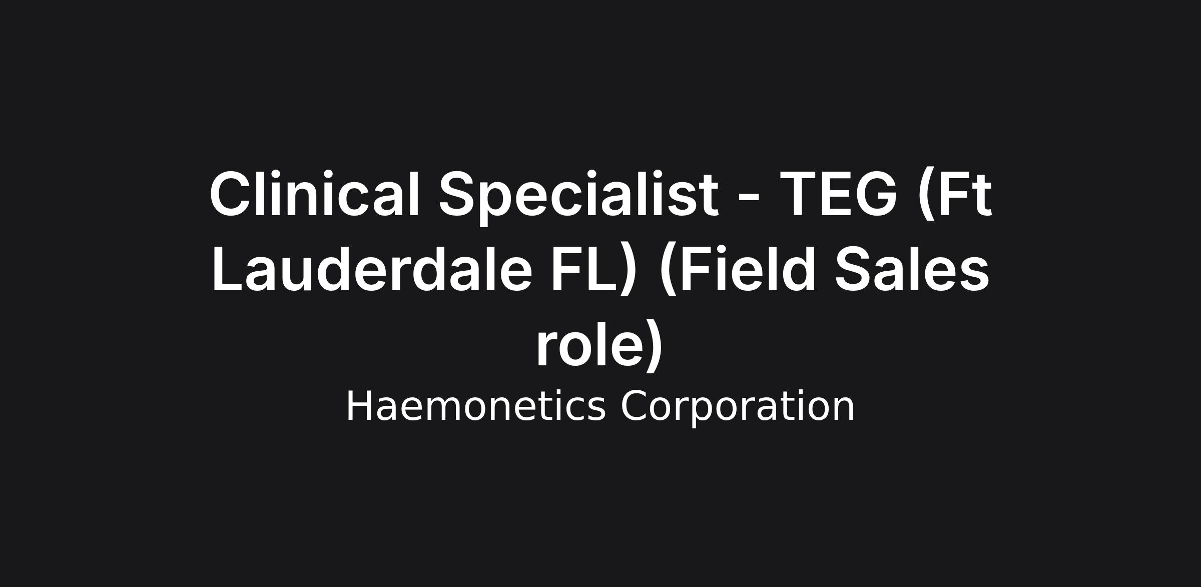 In this role you will Function as TEG (Thromboelastographic) product line Clinical Advisor/Clinical Specialist to the customer and effectively drive utilization and expansion of TEG product line at existing customer sites within defined territory. Support ongoing account management sales process through clinical education and ongoing case support in all existing and potential areas of operation and clinical utilization within the customer site. Grow sales in existing accounts (organic growth) and support new accounts (go-lives) with a growth mindset. This role will require up to 50% travel to include day or overnight domestic travel depending on the territory. Ideal candidates will be located within approx. 45 minutes of a major airport. This role is remote with travel from the above designated territory. Candidates need to currently reside within this territory.