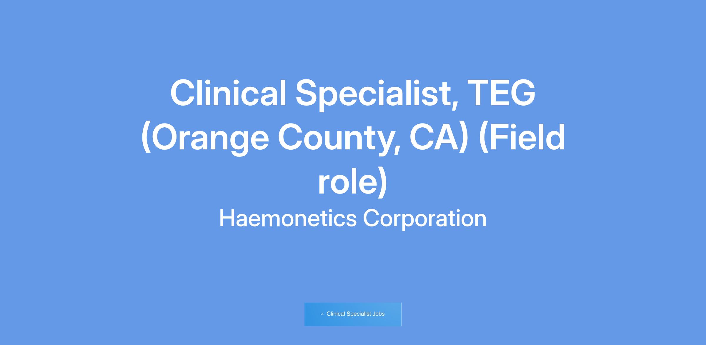 This role will function as TEG product line Clinical Advisor to the customer and effectively drive utilization and expansion of TEG product line at existing customer sites within defined territory. Support ongoing account management sales process through clinical education and ongoing case support in all existing and potential areas of operation and clinical utilization within the customer site. Note: this role requires residence in the Orange County area and is a Field Clinical/Sales role requiring up to 50-75% travel.