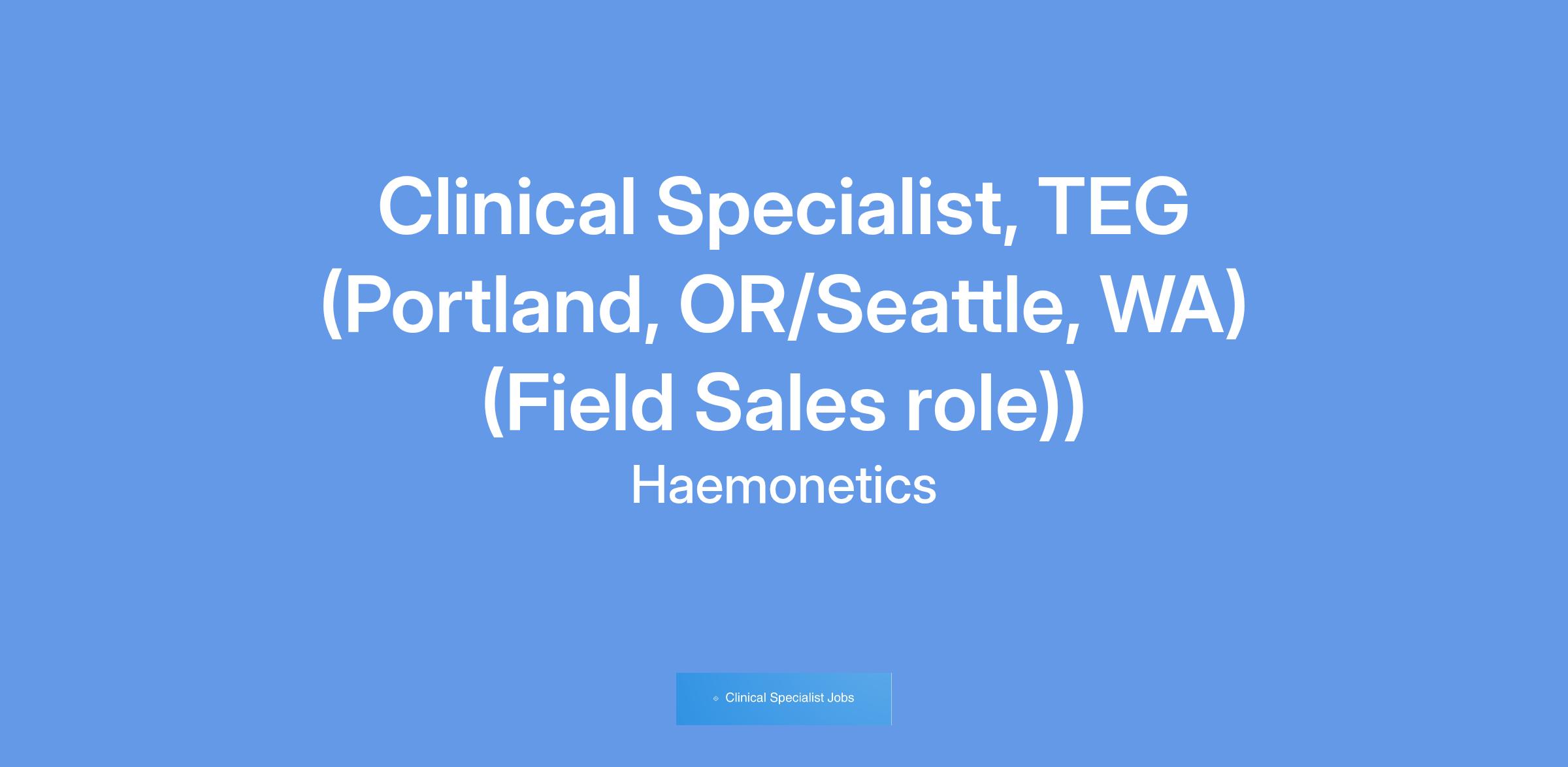 Clinical Specialist, TEG (Portland, OR/Seattle, WA) (Field Sales role))