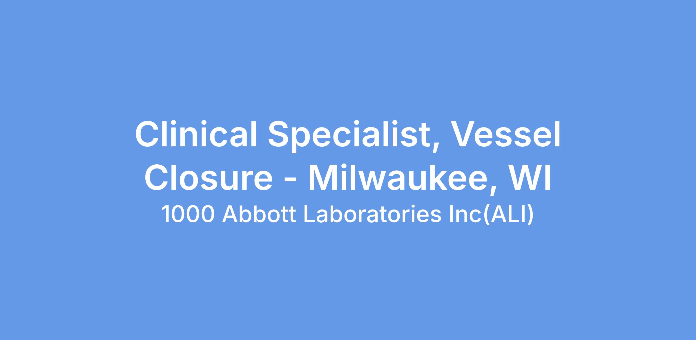 We currently have an opportunity for a Clinical Specialist, Vessel Closure, in Milwaukee, WI. The Clinical Specialist will primarily be responsible for case planning, case support coverage, and product pull- through throughout the designated territory, and throughout the Region as needed. The Clinical Specialist will promote Vascular products through education, service and training of customers in the hospital setting. The Clinical Specialist will provide clinical education and sales support in order to assist in achieving projected sales goals, increasing sales revenues within assigned product lines, and increasing market share. This position will have a heavy focus on Vessel Closure.