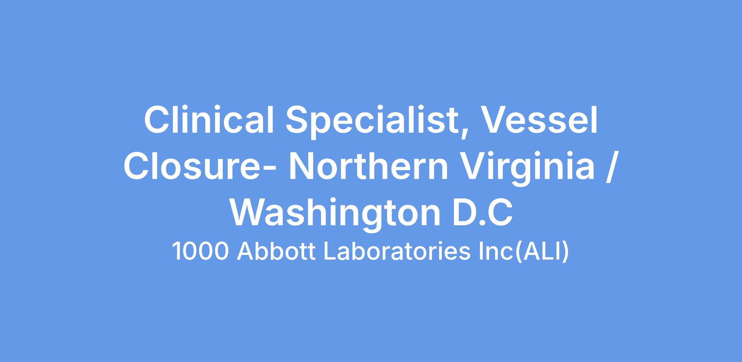 We currently have an opportunity for a Clinical Specialist, Vessel Closure, in (Northern Virginia / Washington D.C.). The Clinical Specialist will primarily be responsible for case planning, case support coverage, and product pull- through throughout the designated territory, and throughout the Region as needed. The Clinical Specialist will promote Vascular products through education, service and training of customers in the hospital setting. The Clinical Specialist will provide clinical education and sales support in order to assist in achieving projected sales goals, increasing sales revenues within assigned product lines, and increasing market share. This position will have a heavy focus on Vessel Closure.