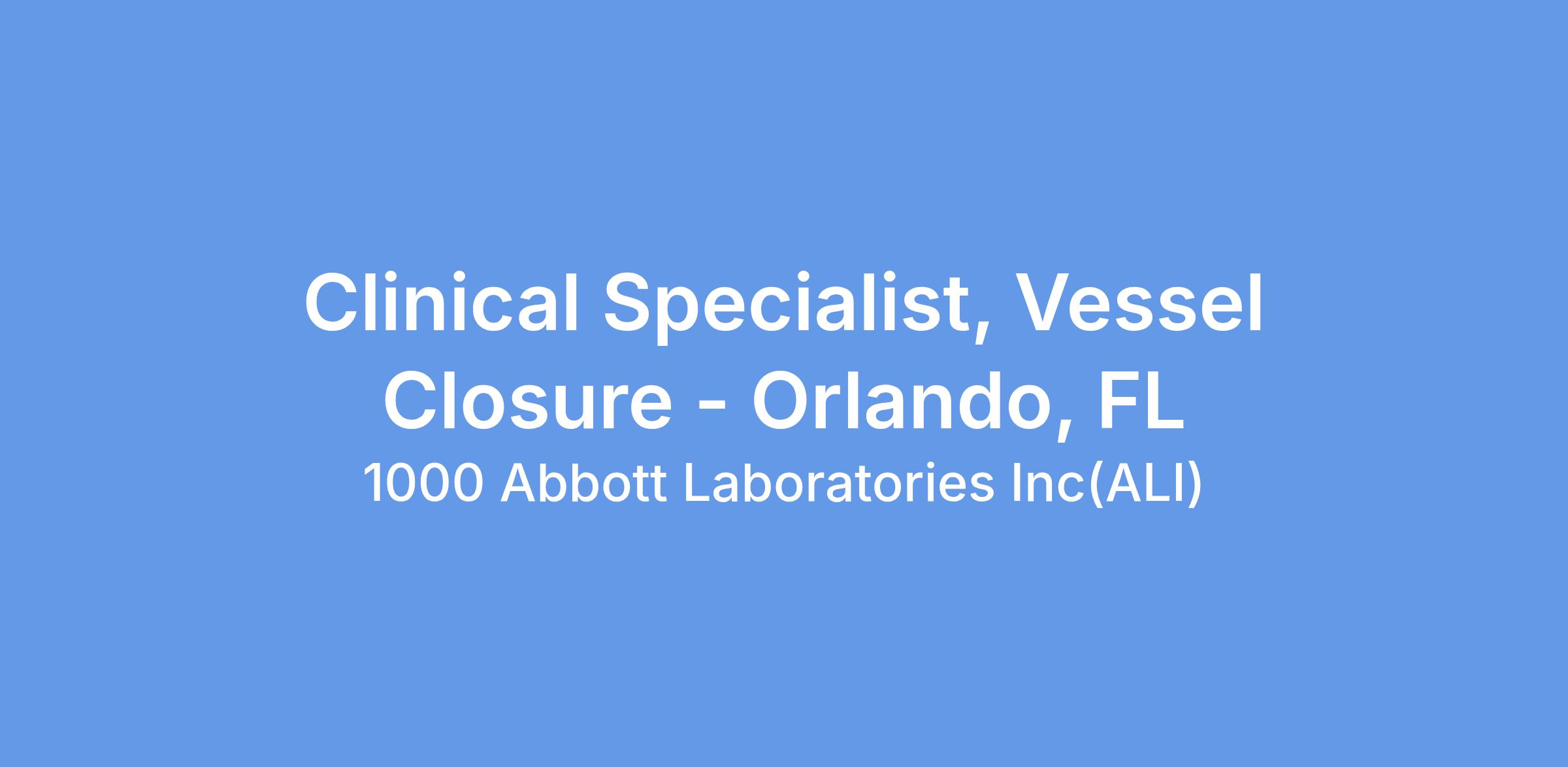 We currently have an opportunity for a Clinical Specialist, Vessel Closure, in Orlando, FLa. The Clinical Specialist will primarily be responsible for case planning, case support coverage, and product pull- through throughout the designated territory, and throughout the Region as needed. The Clinical Specialist will promote Vascular products through education, service and training of customers in the hospital setting. The Clinical Specialist will provide clinical education and sales support in order to assist in achieving projected sales goals, increasing sales revenues within assigned product lines, and increasing market share. This position will have a heavy focus on Vessel Closure.