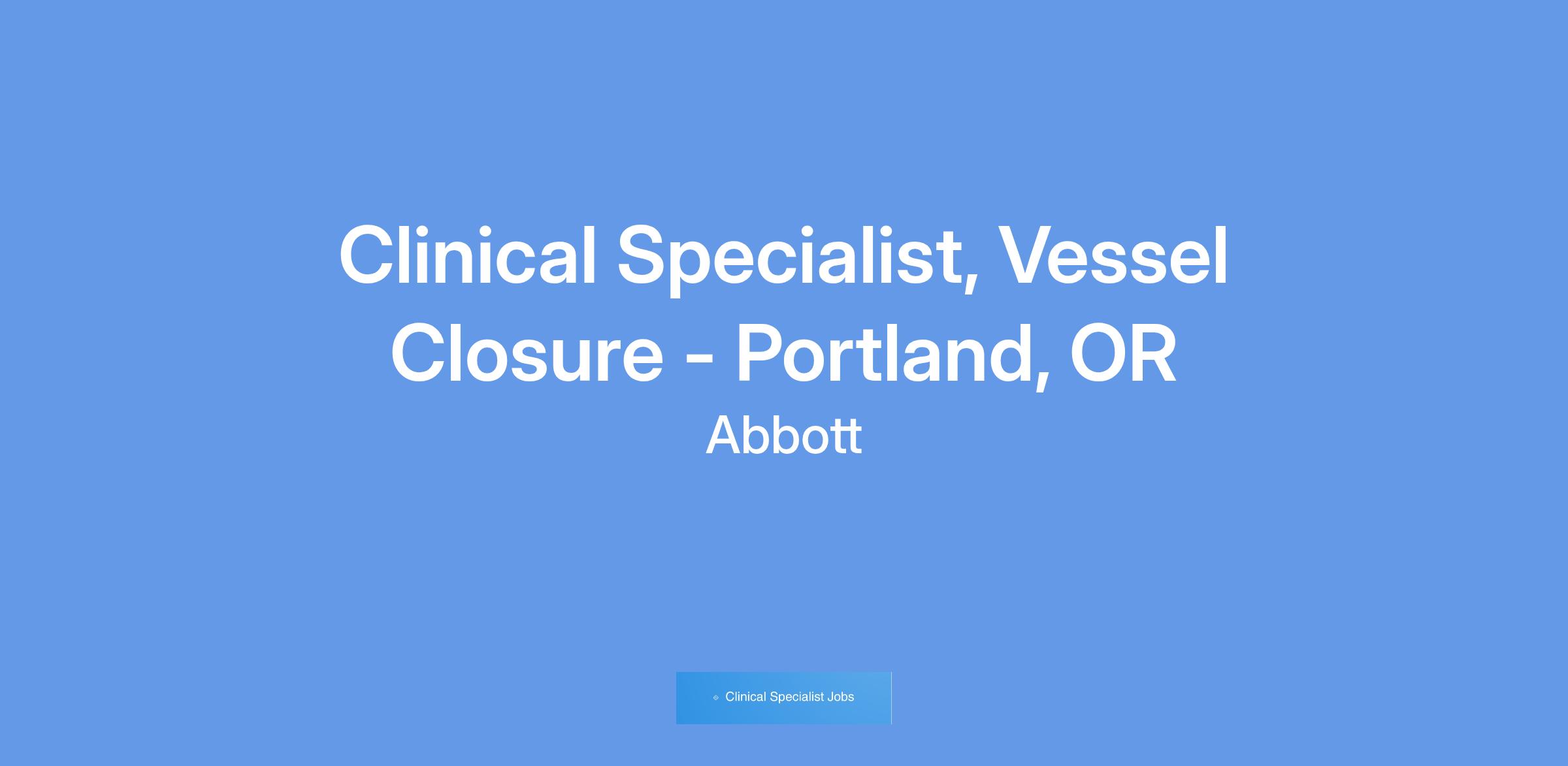 We currently have an opportunity for a Clinical Specialist, Vessel Closure, in Portland, OR. The Clinical Specialist will primarily be responsible for case planning, case support coverage, and product pull- through throughout the designated territory, and throughout the Region as needed. The Clinical Specialist will promote Vascular products through education, service and training of customers in the hospital setting. The Clinical Specialist will provide clinical education and sales support in order to assist in achieving projected sales goals, increasing sales revenues within assigned product lines, and increasing market share. This position will have a heavy focus on Vessel Closure.
