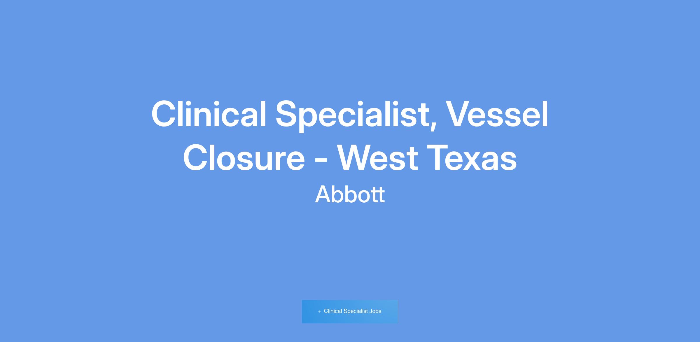 We currently have an opportunity for a Clinical Specialist, Vessel Closure, in West Texas. The Clinical Specialist will primarily be responsible for case planning, case support coverage, and product pull- through throughout the designated territory, and throughout the Region as needed. The Clinical Specialist will promote Vascular products through education, service and training of customers in the hospital setting. The Clinical Specialist will provide clinical education and sales support in order to assist in achieving projected sales goals, increasing sales revenues within assigned product lines, and increasing market share. This position will have a heavy focus on Vessel Closure.