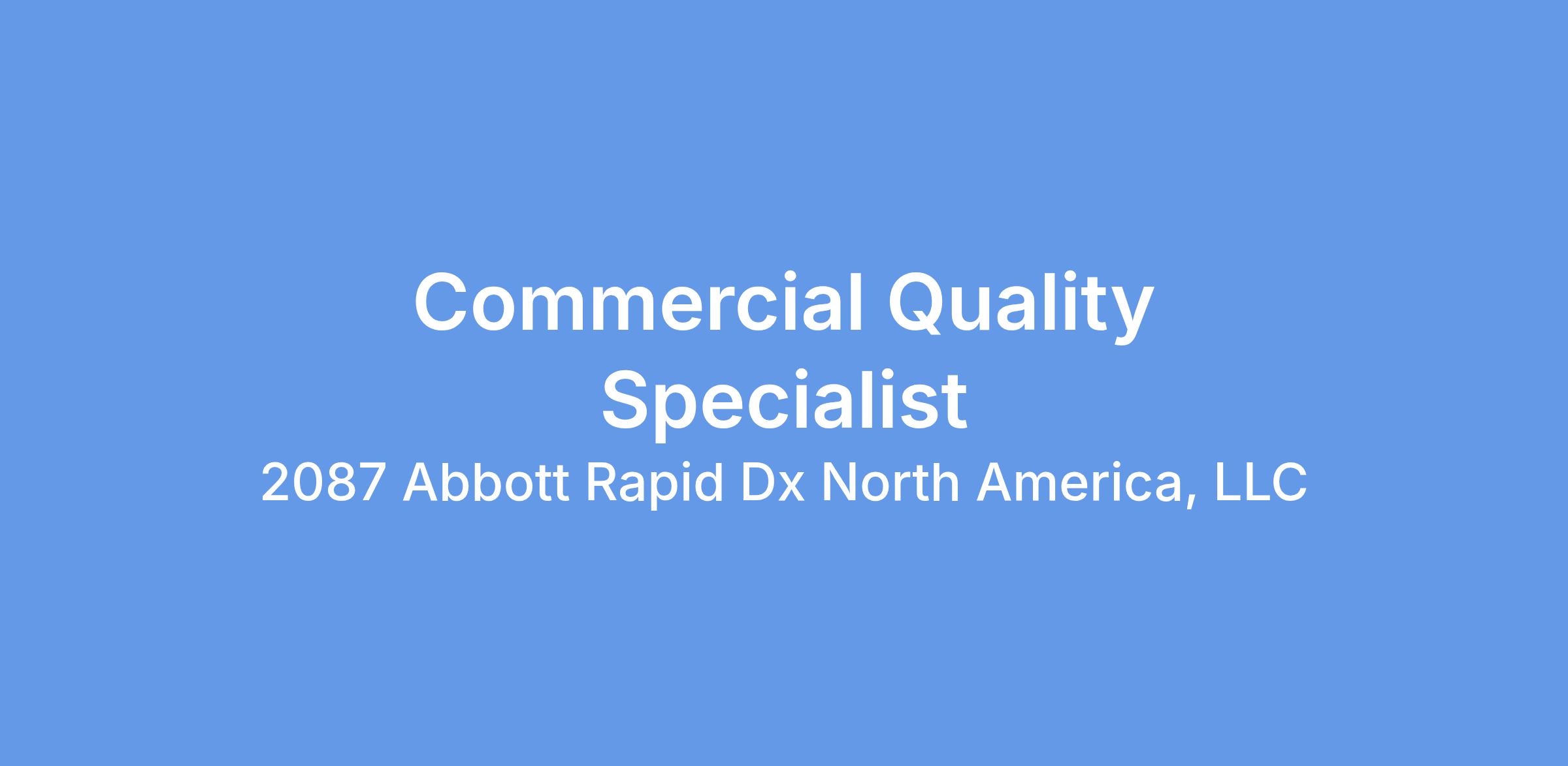 We have an opportunity for the role of Commercial Quality Specialist based in the Lake Forest, IL office.