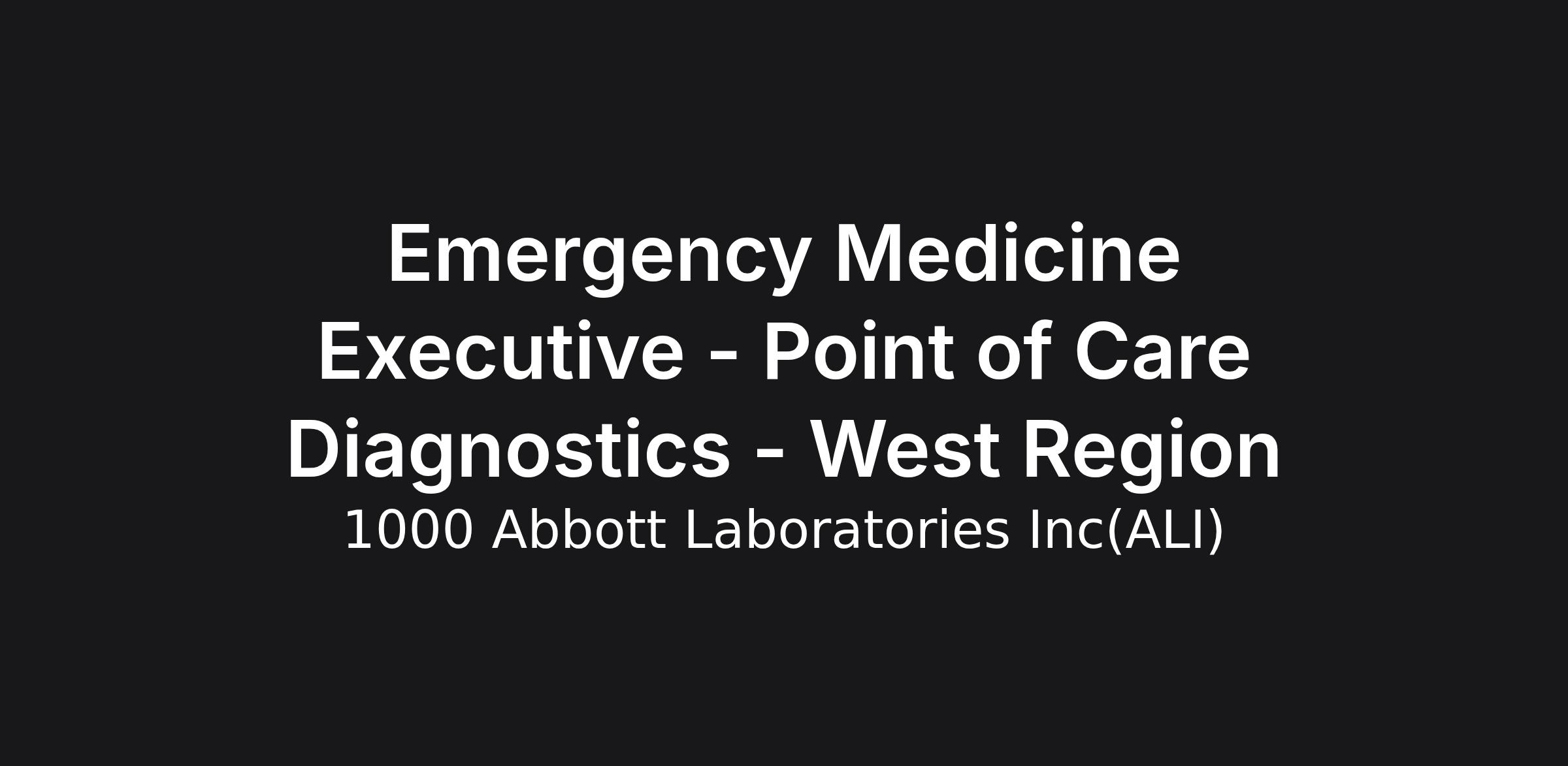 This position is field based in our Abbott Point of Care Division. Abbott Point of Care has an opportunity for an Emergency Medicine Executive WA/OR/ID/UT.