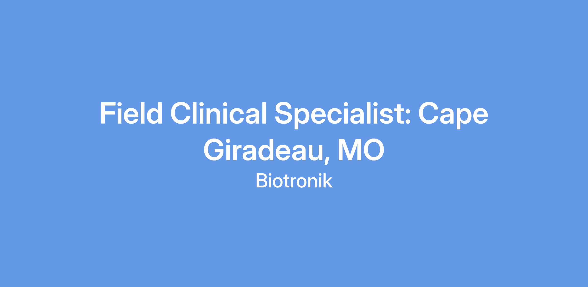 BIOTRONIK is looking to add to our Field Clinical Specialist team in Cape Giradeau, MO (also recruiting for additional locations, see website). The Field Clinical Specialist (FCS) will provide technical and clinical support for Biotronik within an assigned territory. The FCS will be responsible for covering all bradycardia and tachycardia product segments. The FCS professionally represents Biotronik and provides education, follow-up services, implant services, in service training, and other related services as necessary to sales force, physicians and other cardiac pacing-related professionals. The FCS will report to the Regional Sales Director and take general instruction from local sales representatives for day to day activities.