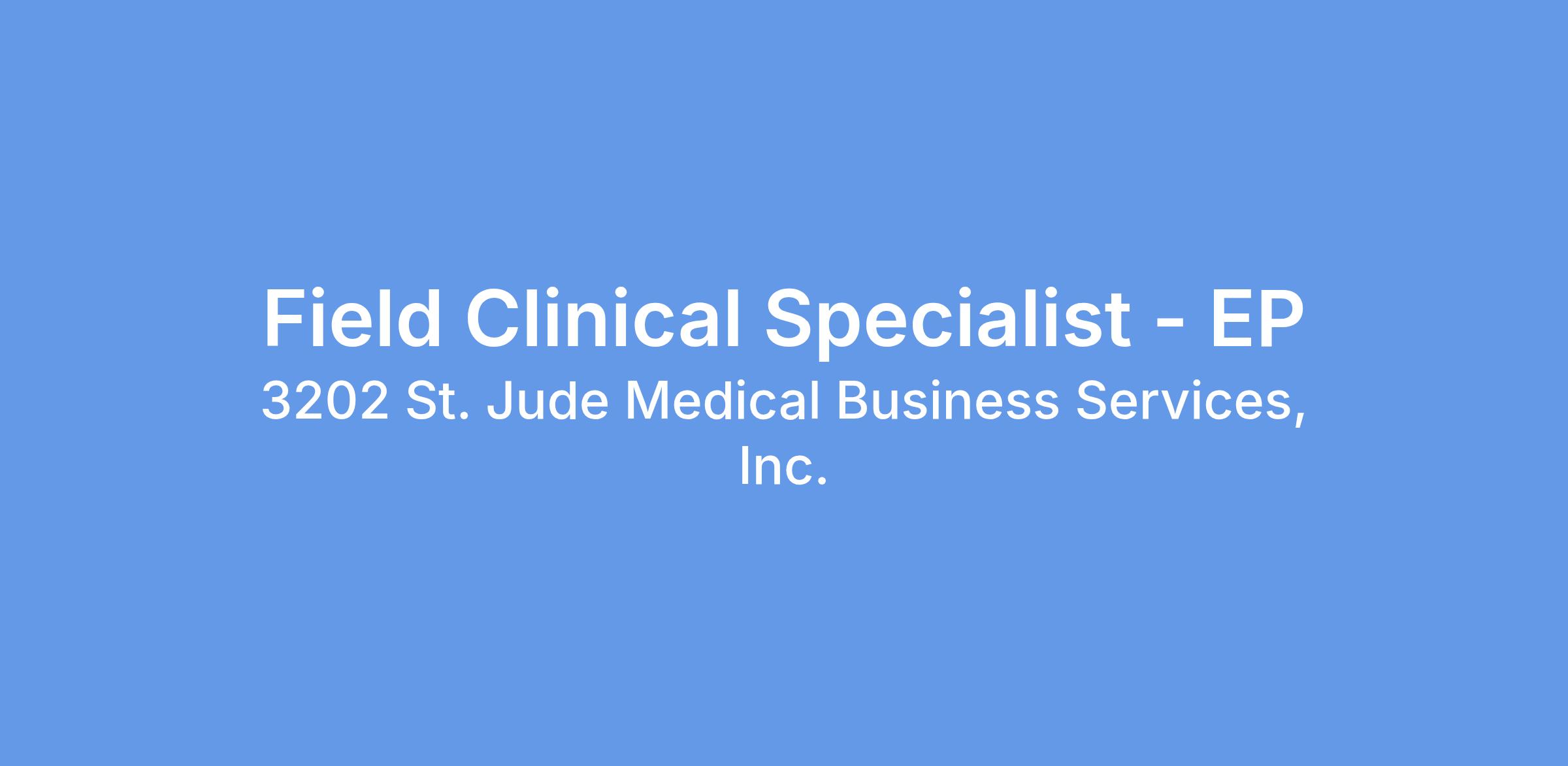 We are seeking a high caliber EP Field Clinical Specialist. This position will be primarily responsible for demonstrated and consistent technical and clinical support to the Clinical Affairs Organization, with specific focus on Electrophysiology (EP) Business Unit (BU) technologies and therapy areas.