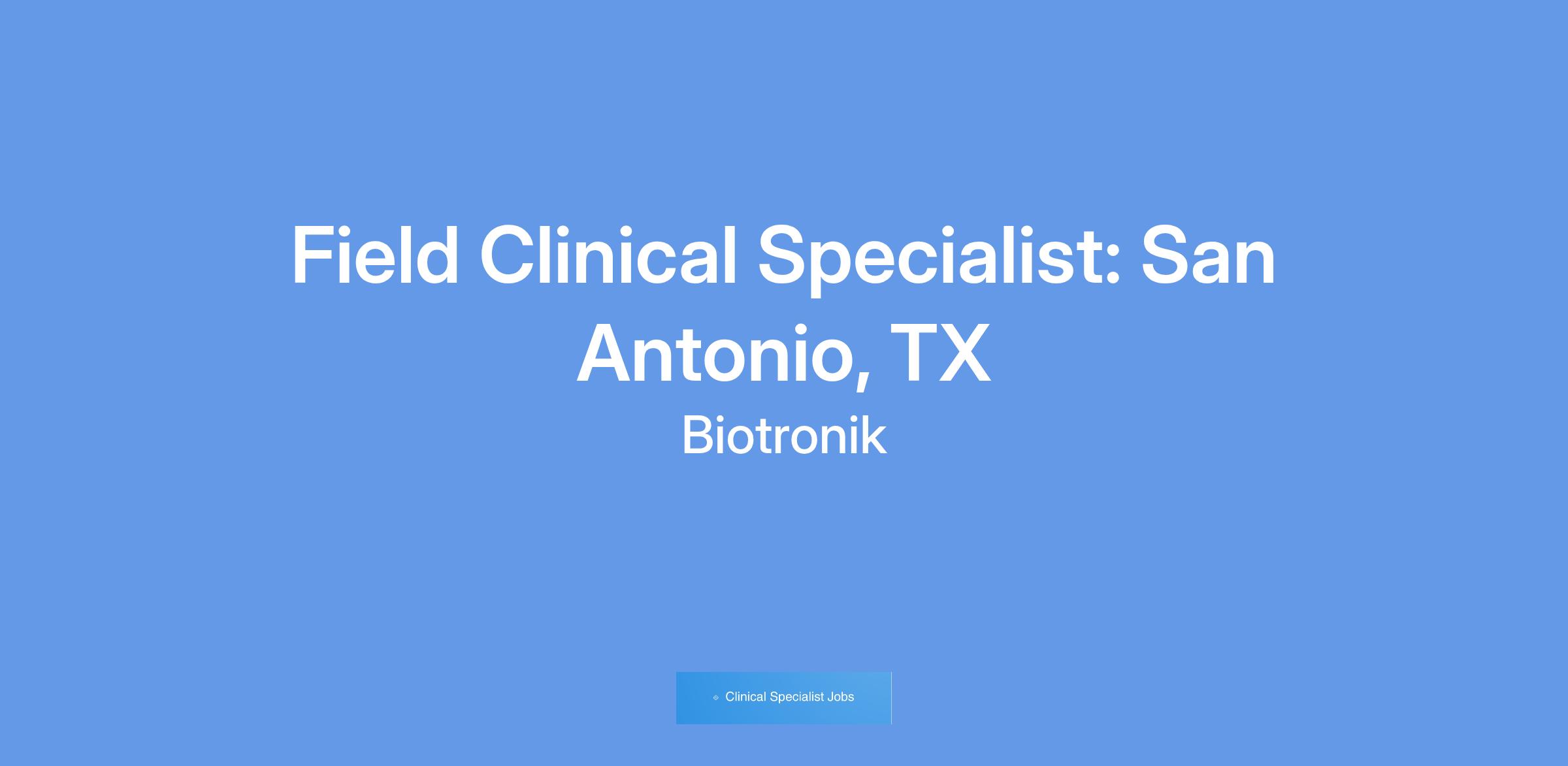 BIOTRONIK is looking to add to our Field Clinical Specialist team in San Antonio, Texas (also recruiting for additional locations, see website). The Field Clinical Specialist (FCS) will provide technical and clinical support for Biotronik within an assigned territory. The Field Clinical Specialist (FCS) will provide technical and clinical support for Biotronik within an assigned territory. The FCS will be responsible for covering all bradycardia and tachycardia product segments. The FCS professionally represents Biotronik and provides education, follow-up services, implant services, in service training, and other related services as necessary to sales force, physicians and other cardiac pacing-related professionals. The FCS will report to the Regional Sales Director and take general instruction from local sales representatives for day to day activities.