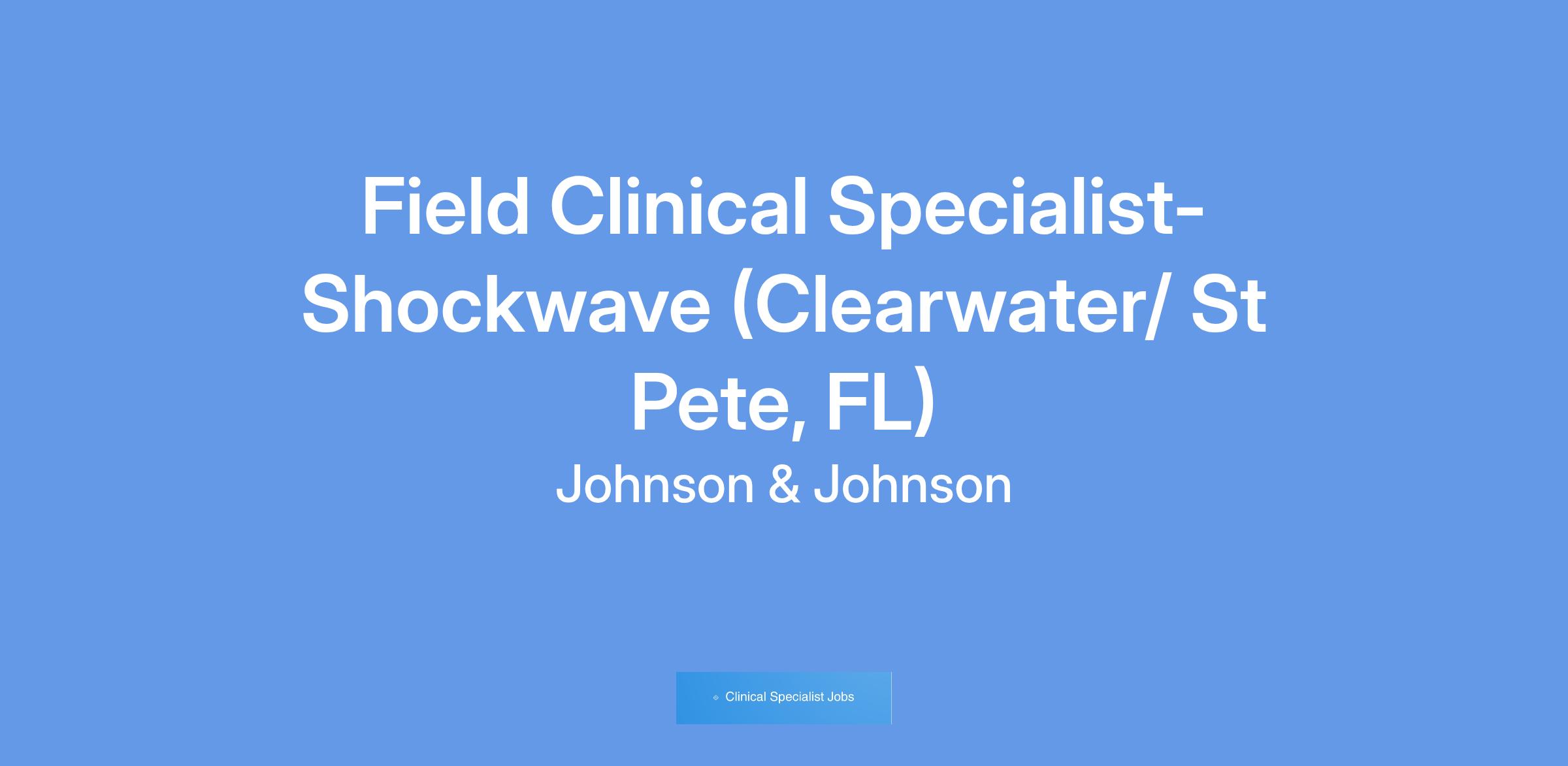 Johnson & Johnson is hiring for a Field Clinical Specialist for Shockwave Medical Inc. located in Clearwater/ St Pete, FL.