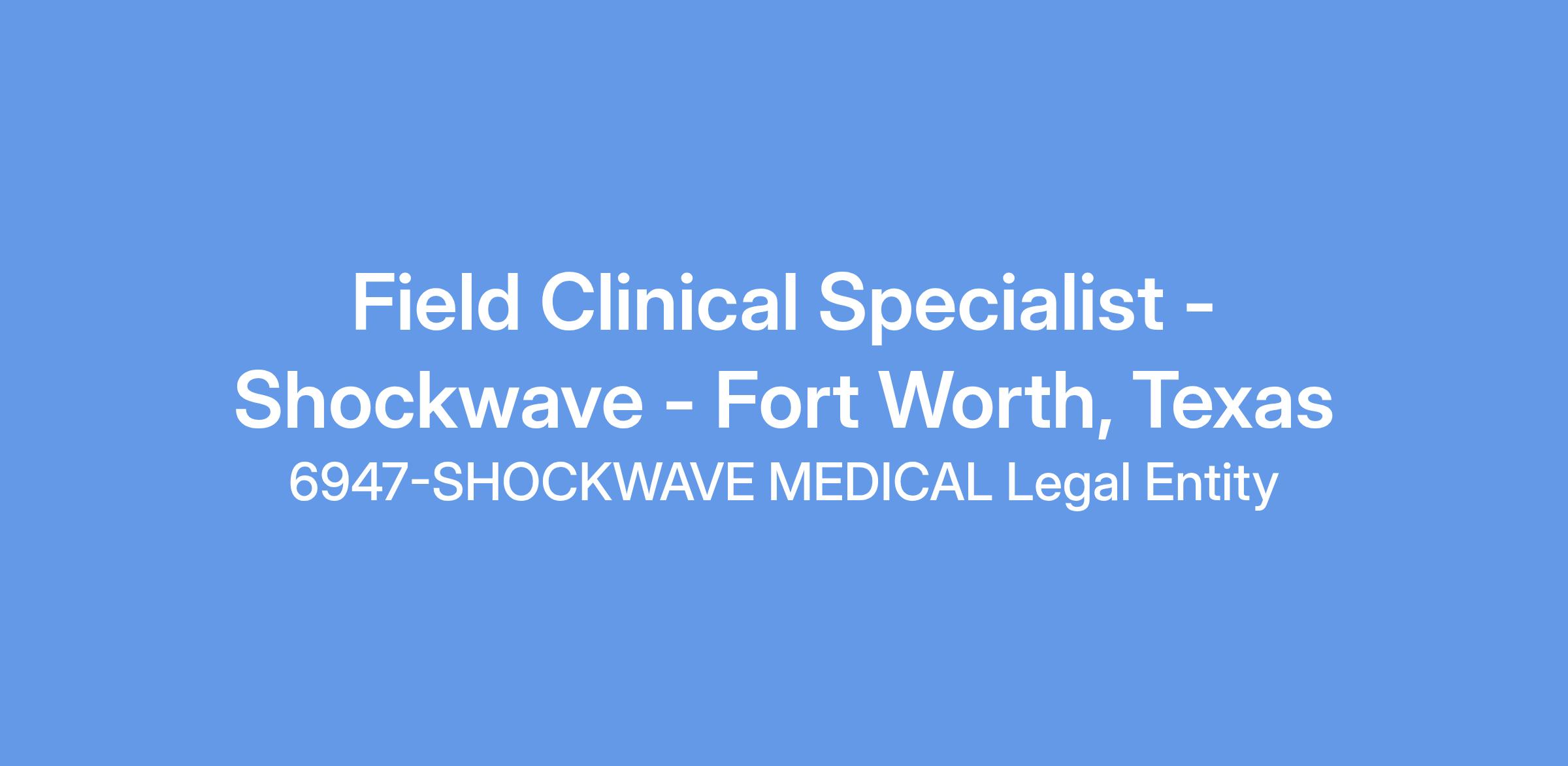 The Field Clinical Specialist is a visible position that will provide case support to physicians within certain territories. Case support will be done on peripheral and coronary interventional procedures in the pre-market and post-market phases of product development with the Shockwave Medical Intravascular Lithotripsy (IVL) ® technology. The Field Clinical Specialist will also play a critical role in clinical studies including device training, case support and ensuring timely data collection for clinical programs. Case support may be required to support other territories at certain times. You must be located in the Fort Worth area.