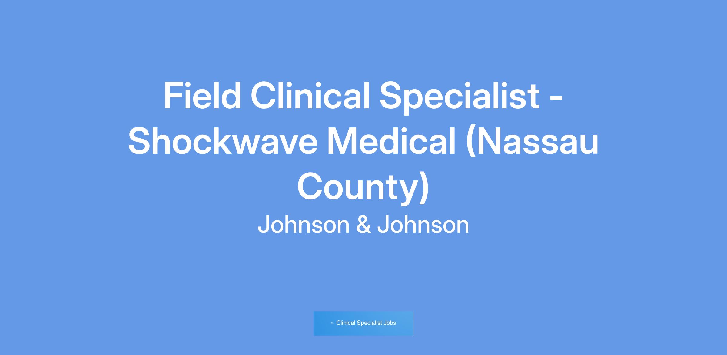Johnson & Johnson is hiring for a Field Clinical Specialist – Shockwave Medical to join our team in Garden City, NY