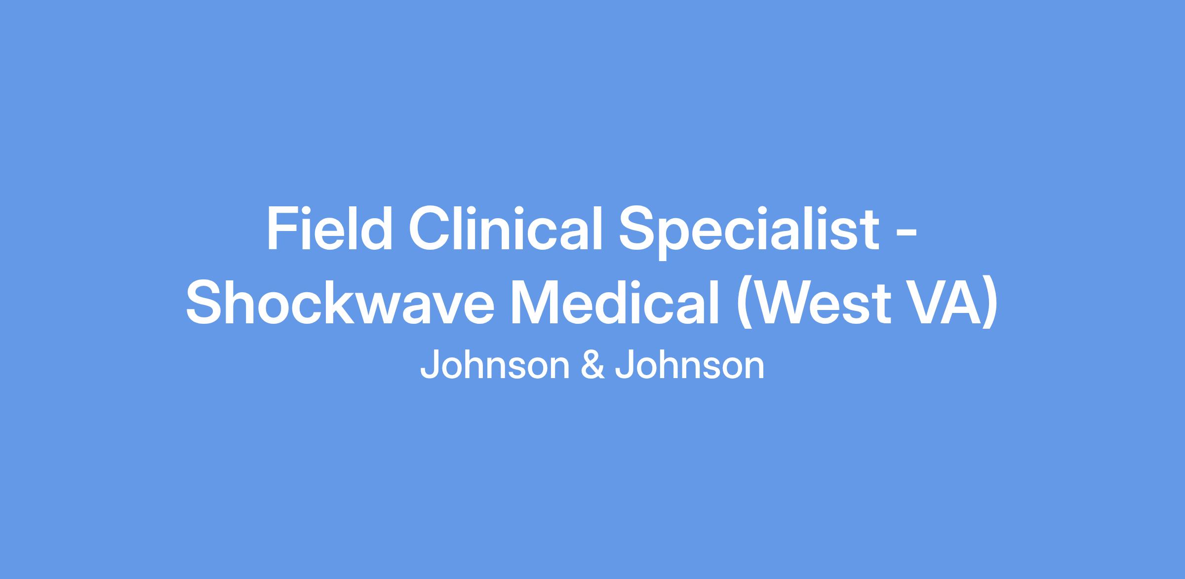 Johnson & Johnson is hiring for a Field Clinical Specialist for Shockwave Medical Inc. located in West Virginia.