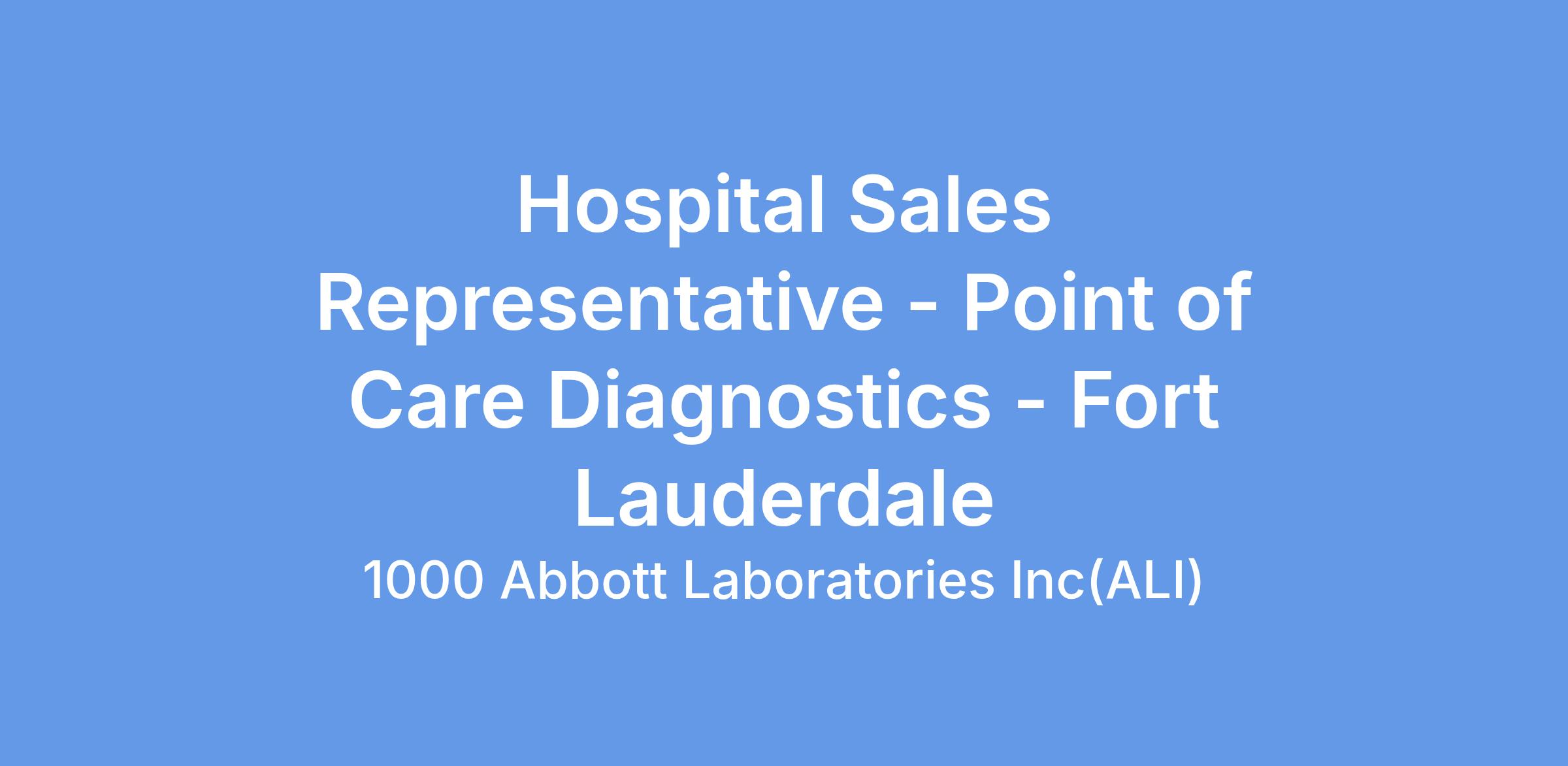 We are hiring a Point of Care Solutions Specialist in our Abbott Point of Care (APOC) Division selling to hospitals.. The territory will include Sarasota, Fort Meyers, Naples, Palm Beach, W. Palm Beach greater Area.