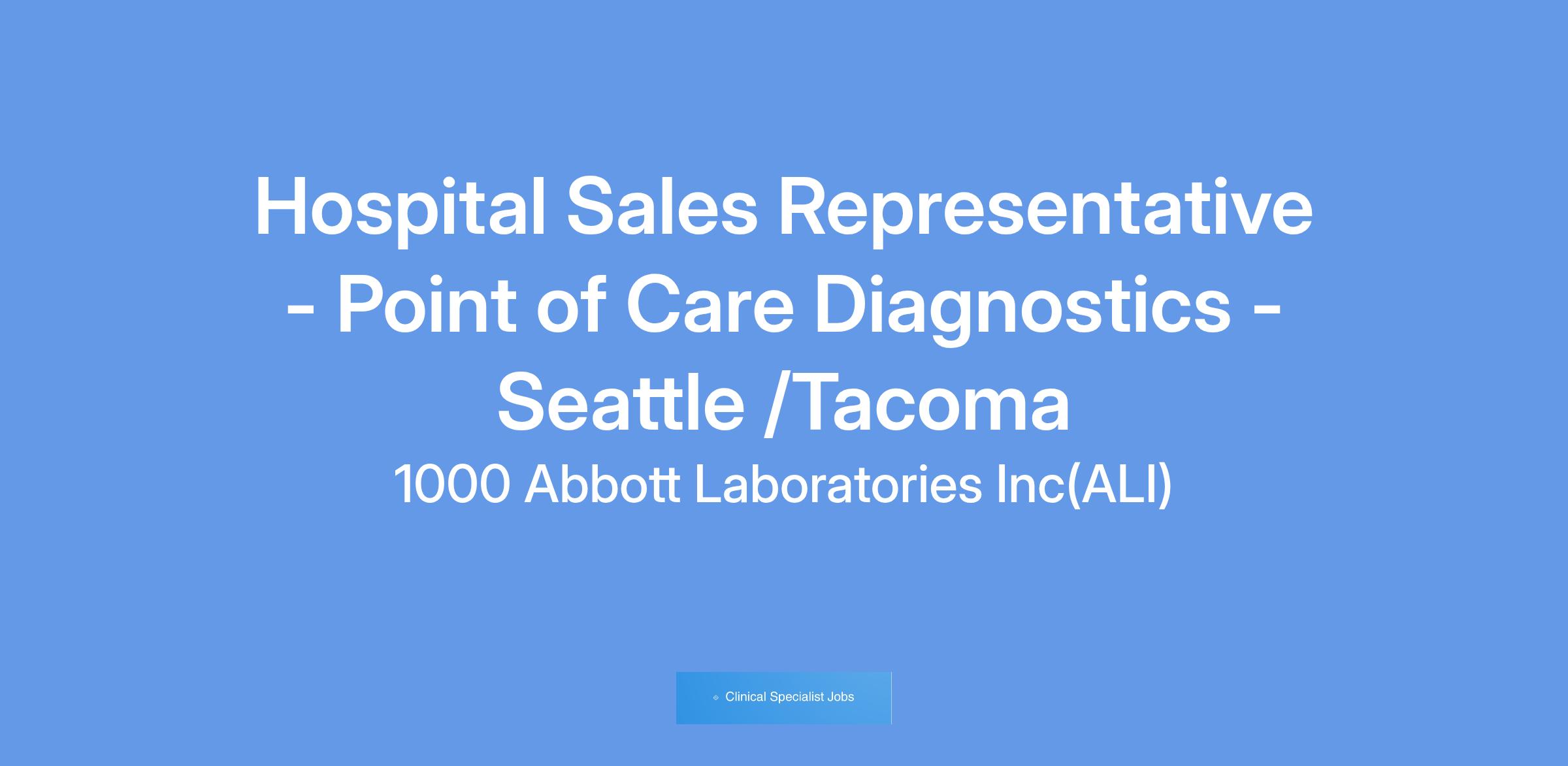 We are hiring a Point of Care Solutions Specialist in our Abbott Point of Care (APOC) Division selling to hospitals with the ideal candidate being based in Tacoma, WA. The territory will include Tacoma, the peninsula, and northern Oregon.