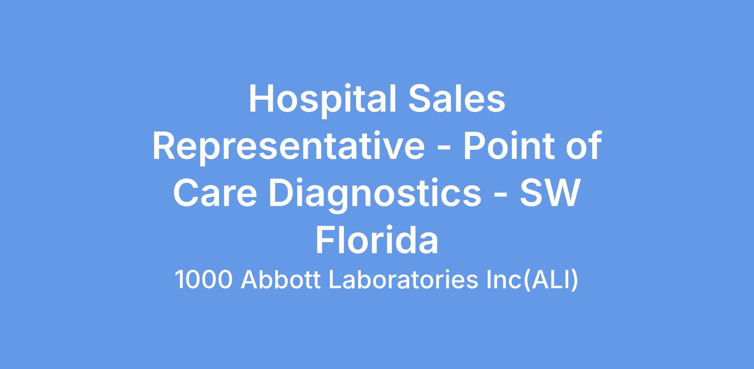 We are hiring a Point of Care Solutions Specialist in our Abbott Point of Care (APOC) Division selling to hospitals covering SW Florida. The territory will include Sarasota, Fort Meyers, Naples, Palm Beach, W. Palm Beach greater Area.