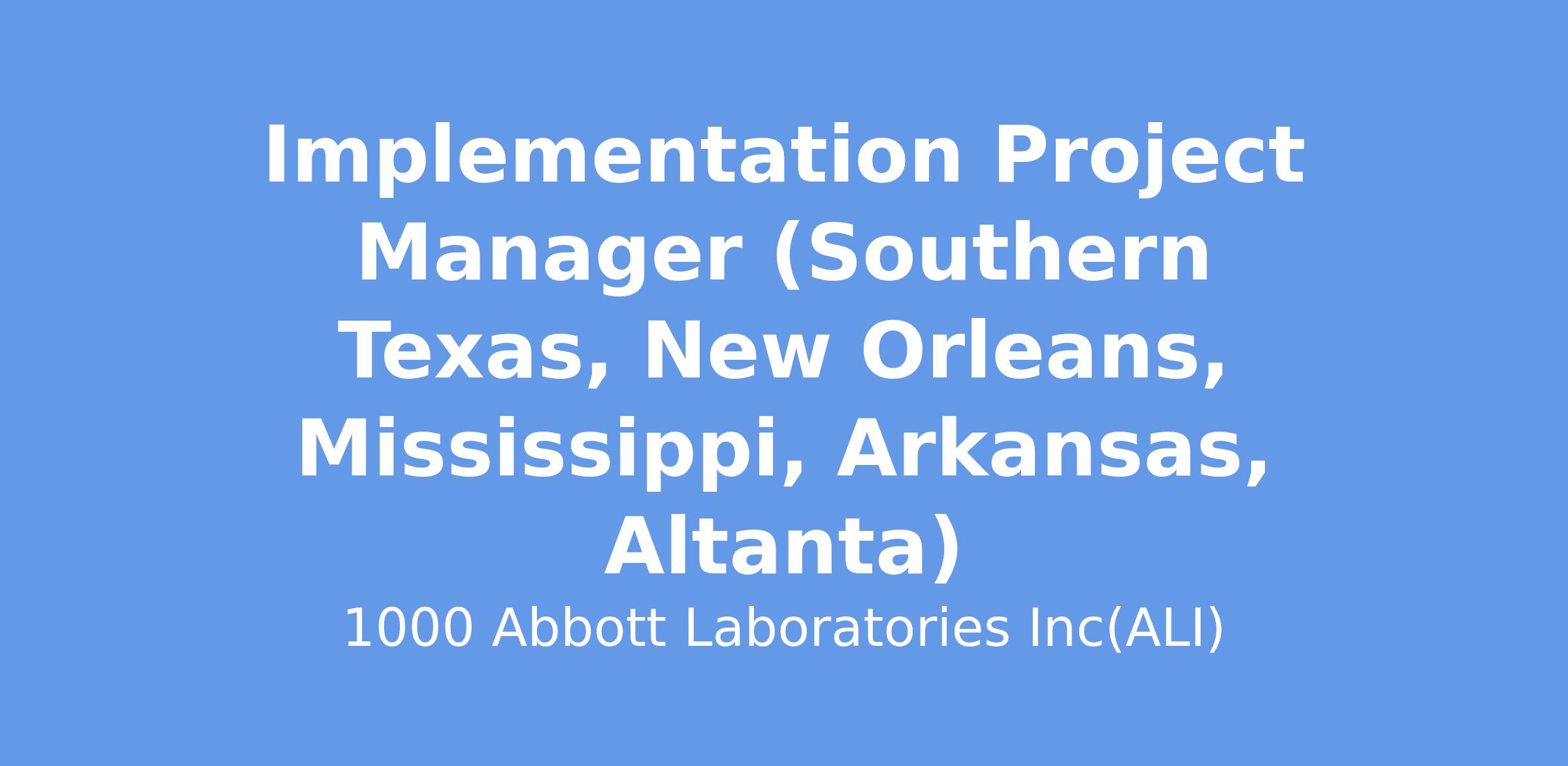 The Implementation Project Manager provides best-in-class project management and execution of associated tasks of company's portfolio of products; engage with key personnel to streamline customer processes to better facilitate patient care through use of the company's solutions. Support Field sales team (i-STAT Solution Specialists) to deliver sales growth by assuming post close to Test of Record implementation responsibilities. Develop new innovative strategies to implement customer solution at an expedited rate. The Implementation Project Manager functions as a laboratory project and account manager to facilitate implementations, build the product value with existing customers to minimize declining business and support field sales during pre-close process to drive territory growth. Territory for this position is Southern Texas, New Orleans, Mississippi, Arkansas, Atlanta, candidate must live within the territory.