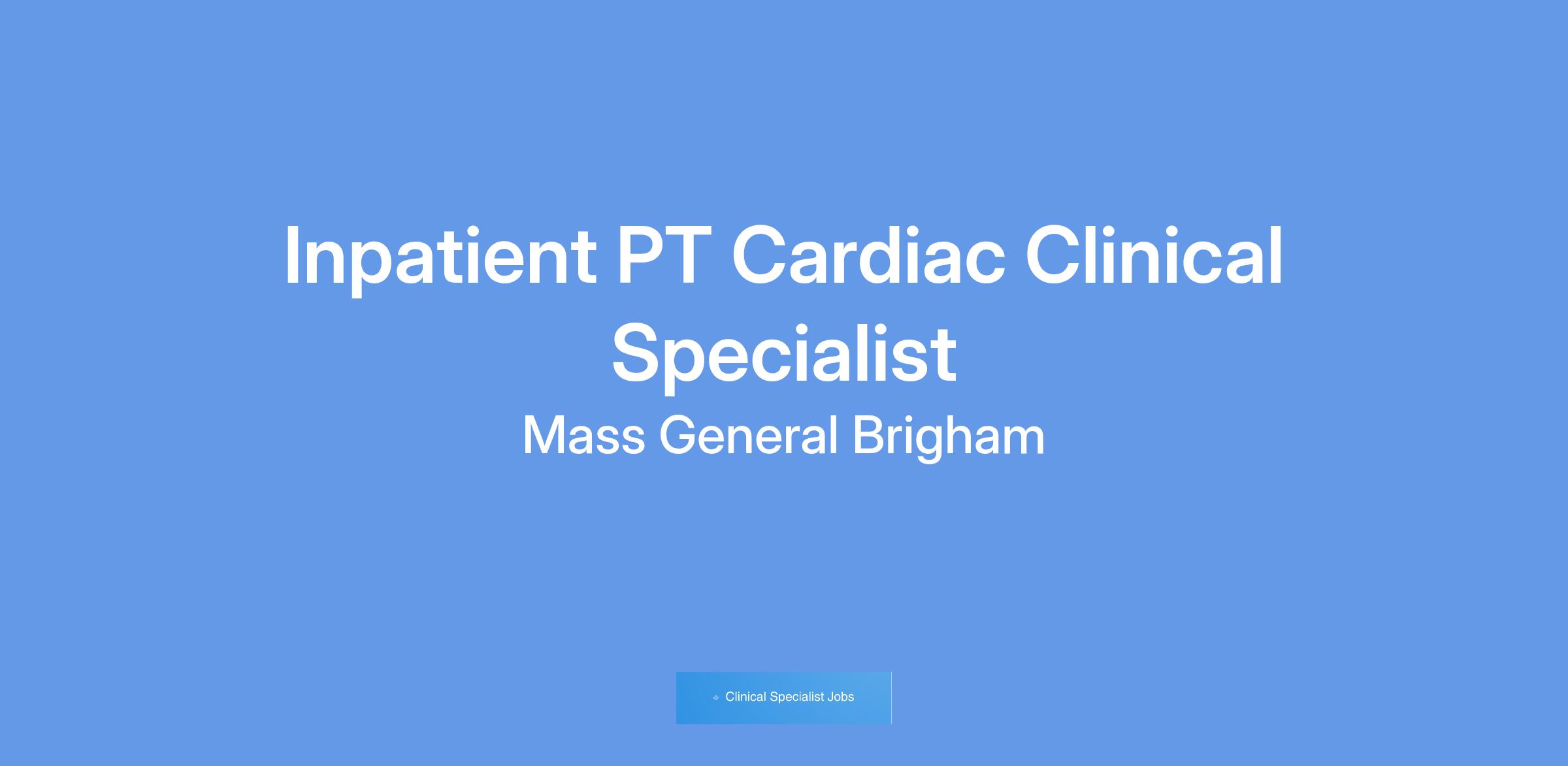 The Physical Therapy Clinical Specialist-Cardiac, is responsible for providing competent, compassionate, individualized physical therapy care for referred patients, including direction and supervision of non-professional staff. Care needs to be safe, efficient, effective, timely and meet the cultural, spiritual, and ethnic needs of each patient and family. The Clinical Specialist is responsible for providing advanced level of care, ensuring clinical practice is current and meets the needs of our patients. They identify opportunities for changes in practice to improve the quality of care and efficiency of practice operations in collaboration with Clinical Director. The physical therapy clinical specialist is responsible for the clinical orientation, initial and ongoing competence assessment of staff. The physical therapy clinical specialist serves as a department liaison to MGH physicians, nurses and other health care providers on a regular basis. They are expected to ensure their practice is transparent to leadership and be committed to continuous clinical growth and self-improvement. Understands and ensures that staff comply with hospital and department policies and procedures, and the specific quality standards of care, competencies and procedures unique to the assigned patient area and of the department.