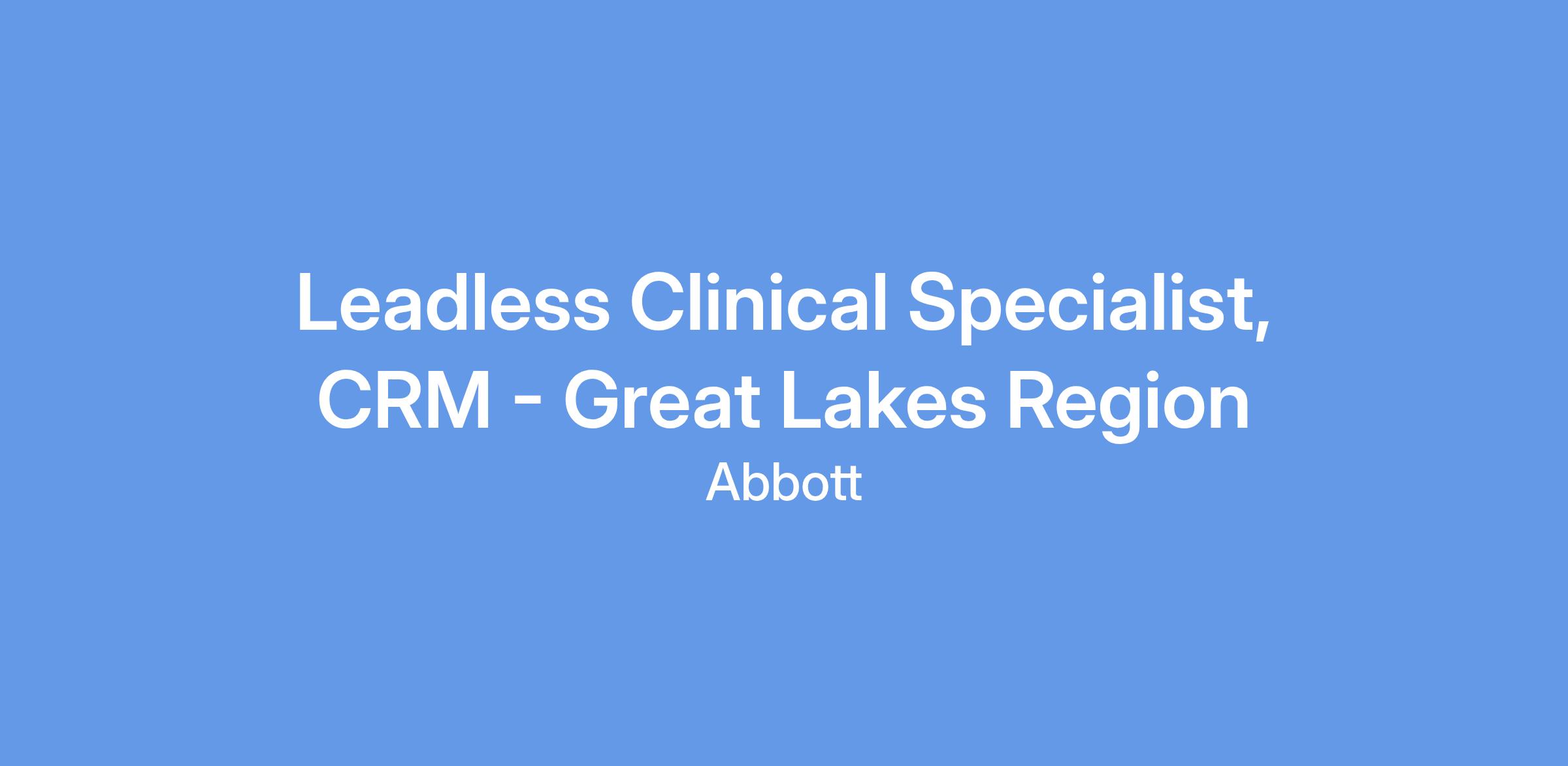 The Leadless Clinical Specialist offers technical, clinical, educational, and sales support to promote the safe adoption and expansion of Abbott's leadless technology. This role involves collaborating closely with both internal and external stakeholders to foster therapy adoption and ensure procedural success.