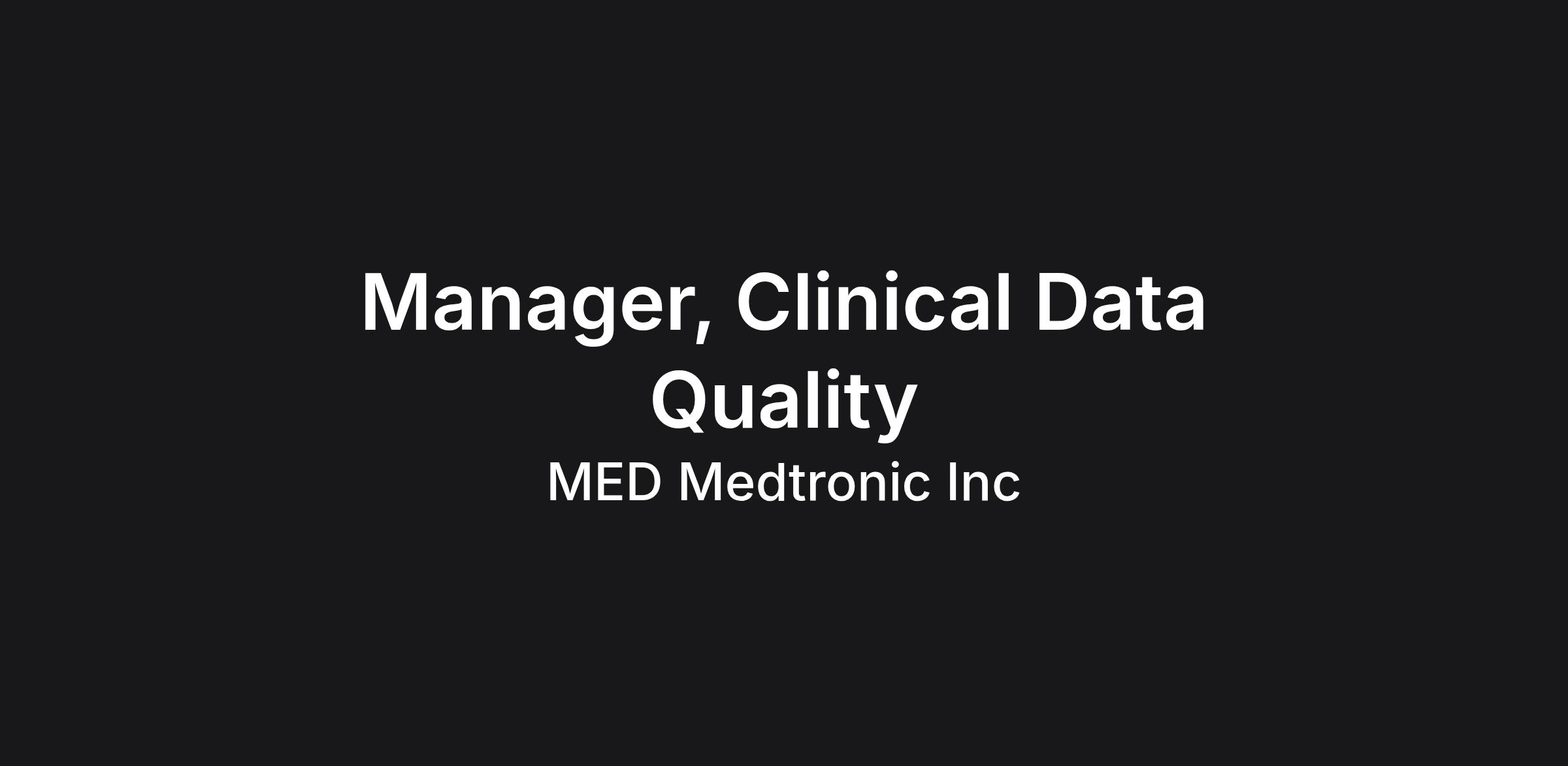 The Manager, Clinical Data Quality leads a team responsible for ensuring high‑quality, reliable clinical study data across a global clinical research portfolio, including Cardiac Rhythm Management, Cardiac Ablation Solutions, and Post Approval Surveillance. This role provides people leadership and operational oversight of clinical data quality activities, partnering closely with Clinical Operations, Data Management, Safety, Field Clinical teams, and Study Leadership to proactively monitor data quality, guide query resolution, and ensure studies proactive data quality monitoring, effective query resolution, and ongoing inspection and milestone‑readiness. In addition to managing day‑to‑day execution, this role is responsible for advancing scalable, forward‑looking data quality practices through the use of analytics, reporting, and process optimization to support timely database snapshots, locks, and study outcomes.