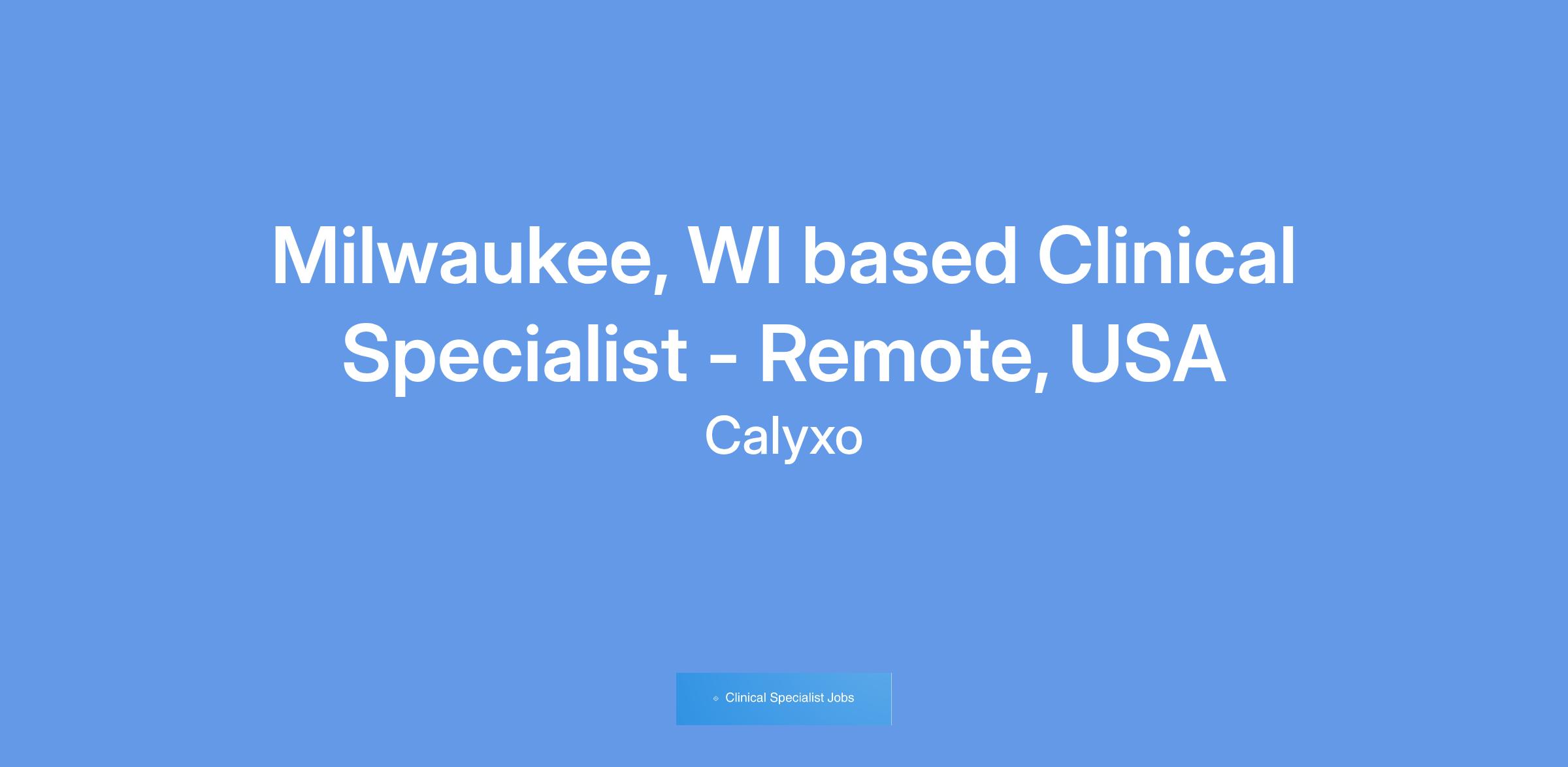 Milwaukee, WI based Clinical Specialist - Remote, USA