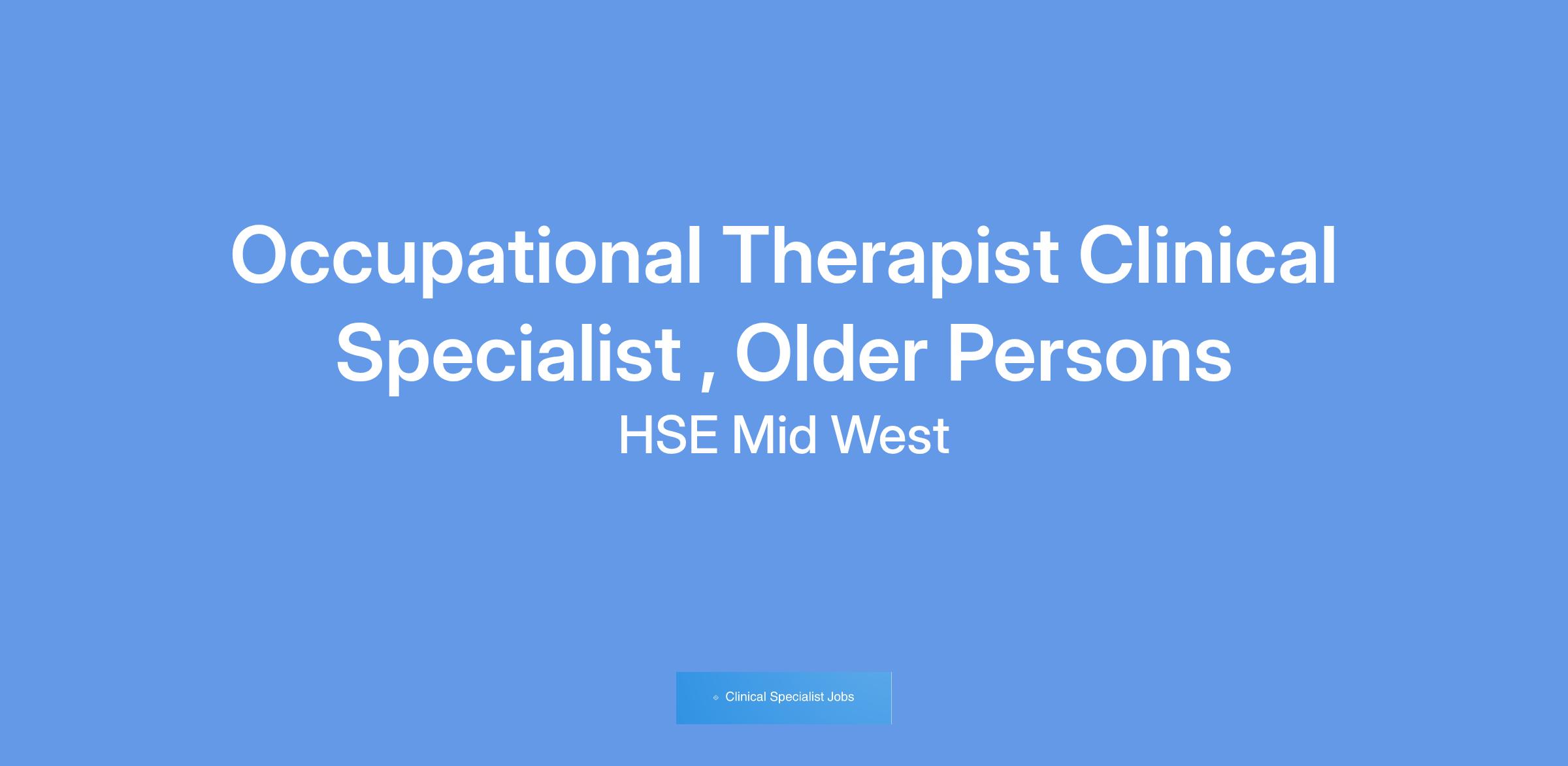 The post holder(s) will work in collaboration with the Occupational Therapist Manager and Occupational therapists in planning, co-ordinating, delivering and evaluating the Older Adult services. The Clinical Specialist Occupational Therapist (s) with the Older Persons team will work as part of a collaborative leadership team in conjunction with all relevant stakeholders. The Clinical Specialist will contribute to the development of the Occupational Therapy service commensurate with a National Centre of Excellence and in line with National Strategy and Clinical Care Programmes.