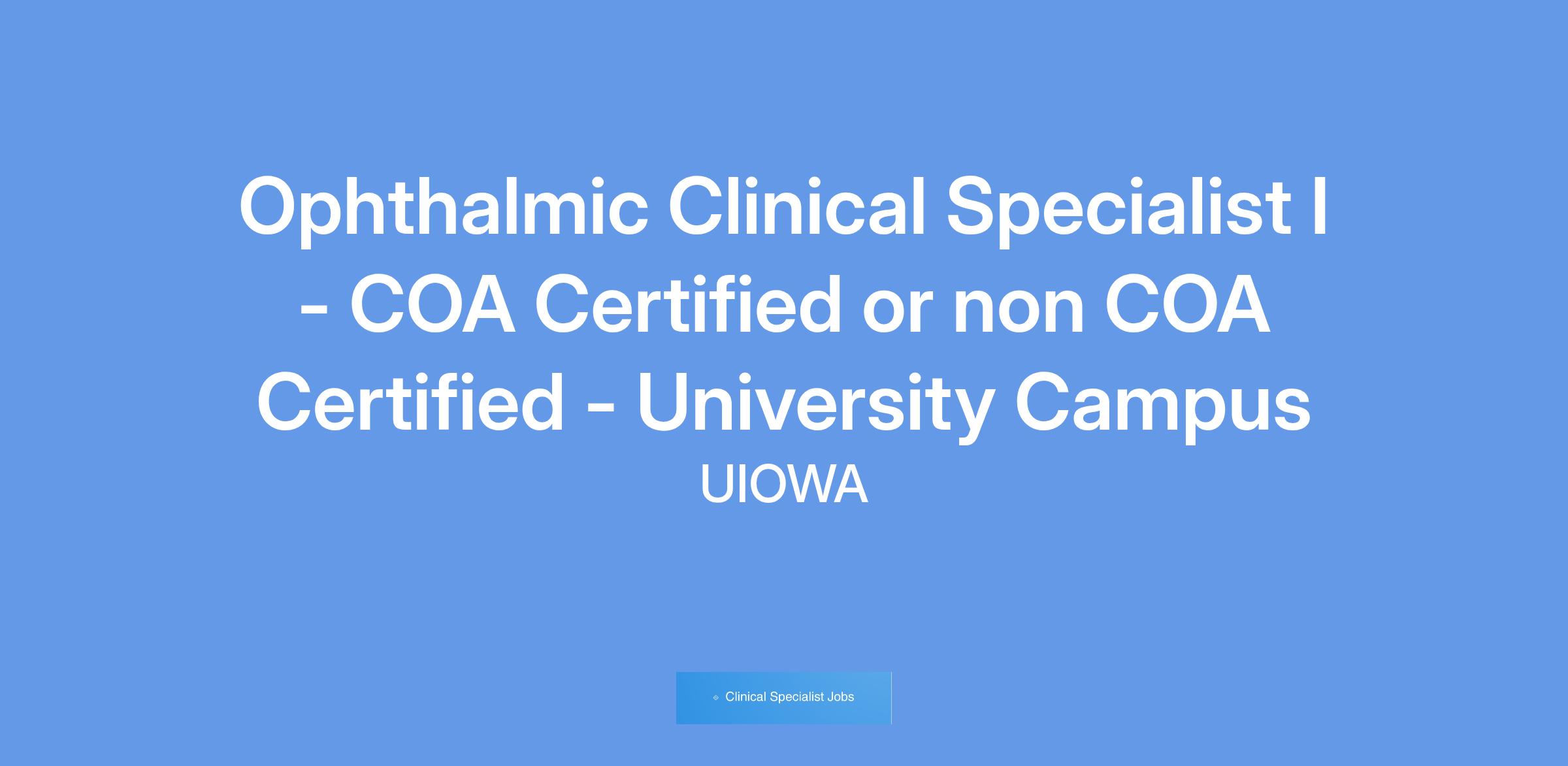 COA Certified (Ophthalmic Clinical Specialist I) Minimum Eligibility Requirements: