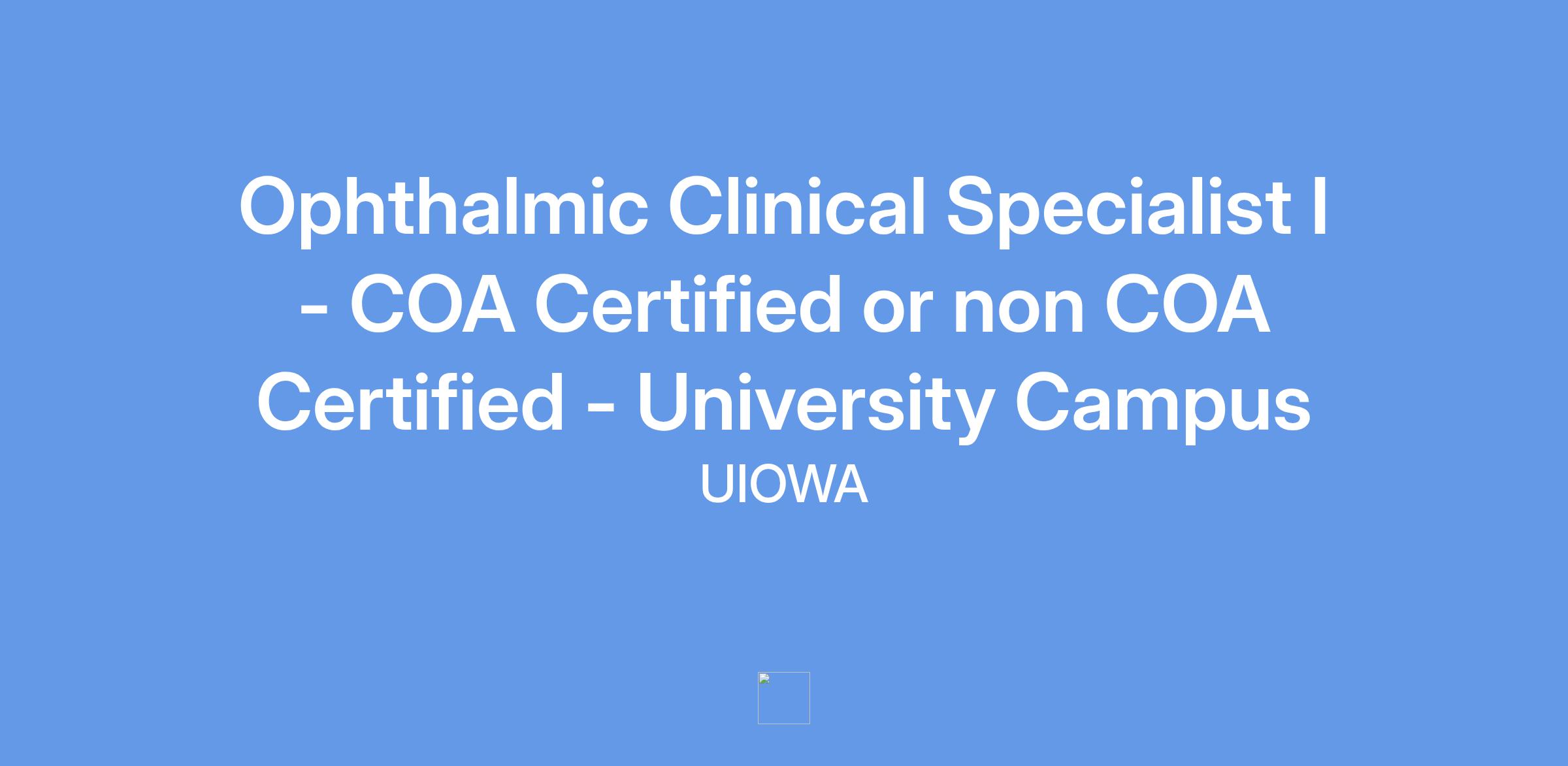 The Department of Ophthalmology and Visual Sciences intends to hire at either the Ophthalmic Technician, non-COA certified classification, or Ophthalmic Clinical Specialist I, COA certified classification, based on the qualifications of the successful candidate. Please indicate in your application materials the position you wish to be considered for or indicate both.