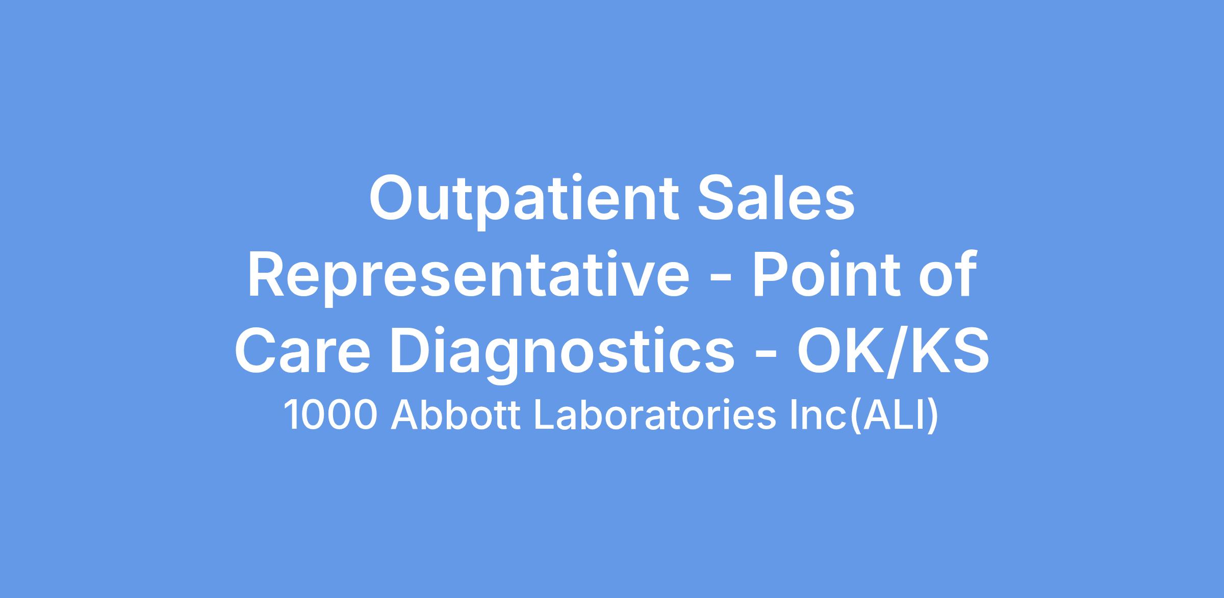 We are hiring a Point of Care Solutions Specialist (Outpatient) in our Abbott Point of Care (APOC) Division selling to outpatient customers covering OK, KS and the TX Panhandle. The Point of Care Solution Specialist works independently within an assigned territory leading commercial execution to increase market share and drive sustainable growth. Working in a collaborative environment, the Sales Specialist will partner with internal support team members to identify opportunities and create strategies that move sales cycles forward. The position reports to the District Manager and requires up to 50% travel to provide customer-focused service and effectively support business goals.