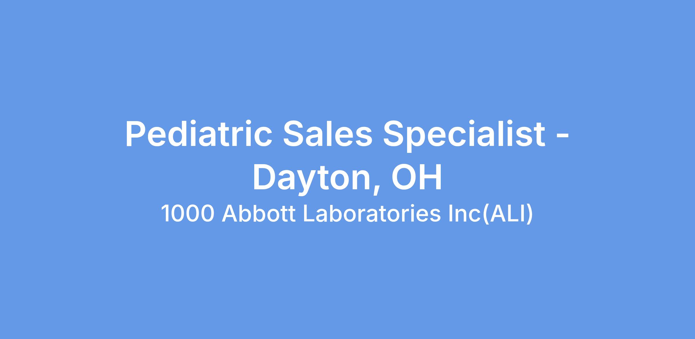 Our location in Dayton, OH currently has an opportunity for a Pediatric Sales Specialist. This position is responsible for the promotion, management and growth of Abbott Pediatric Nutritional products in hospital and office settings.