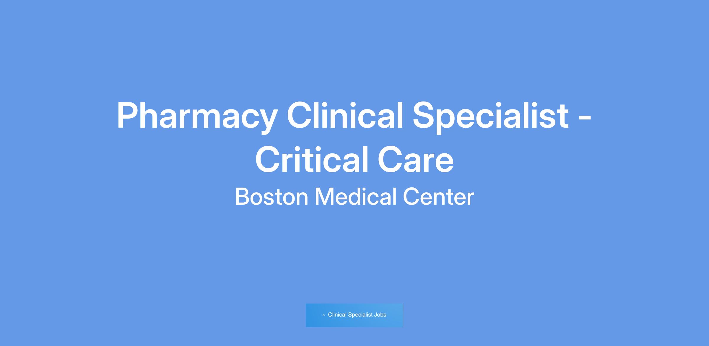 This is an exciting opportunity for a motivated Critical Care-trained pharmacist to join Boston Medical Center, a large academic medical center, as a Clinical Specialist on a team of Critical Care and Emergency Medicine pharmacists. The Clinical Specialist will primarily provide coverage to the Medical ICU, Surgical ICU, Cardiac ICU, or Neurosciences ICU, but will additionally be cross trained to cover in our Emergency Department. The position requires decentralized weekend coverage every 4th weekend and decentralized ICU evening coverage approximately every 8 weeks. Pharmacy services at Boston Medical Center are indispensable and highly integrated at the front-line level for patient care and into the broader leadership level of the organization. Residency and student training will be a central component of this position. Boston Medical Center has six PGY1 residents and PGY2 programs in Critical Care, Emergency Medicine, Infectious Diseases, Oncology, and Ambulatory Care. The Clinical Specialist will be expected to lead and participate in novel quality improvement or research projects that improve the care of critically ill patients and advance pharmacy practice. Finally, there will be opportunities for professional growth and advancement as the Pharmacy Department at Boston Medical Center seeks to further advance practice by striving to be leaders in quality improvement and patient safety.