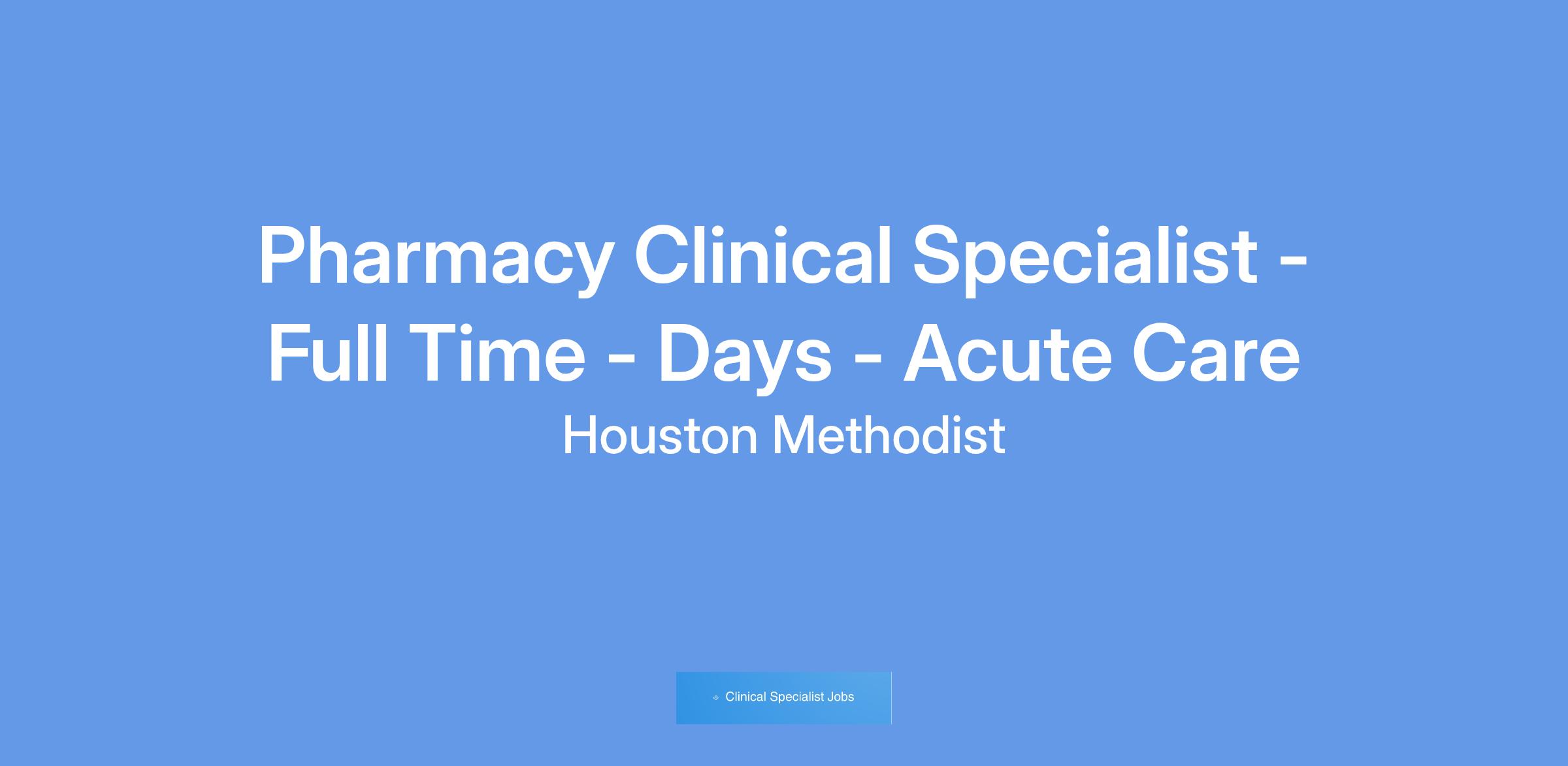 Pharmacy Clinical Specialist - Full Time - Days - Acute Care