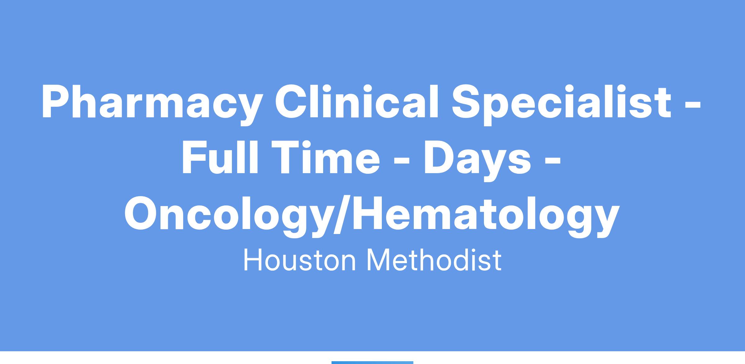 At Houston Methodist, the Pharmacy Clinical Specialist position is responsible for performing advanced clinical pharmacy duties enabling the delivery of optimal pharmacotherapy to patients and facilitating safe, efficacious, and pharmacoeconomically rational use of medications in the population(s) served. This position involves daily reactive and targeted proactive medication regimen reviews for patients within the designated area(s) of responsibility or populations served. The Pharmacy Clinical Specialist position supports the delivery of pharmacy managed protocols, formulary processes and medication reconciliation activities while providing education to fellow pharmacists, nurses, and medical staff. Additional duties for this position include precepting pharmacy students and pharmacy residents on clinical patient care rotations within areas of responsibility and contributing to fulfilling the organization's mission to provide innovative, personalized, cost-effective pharmaceutical care in a culture dedicated to quality and safety.