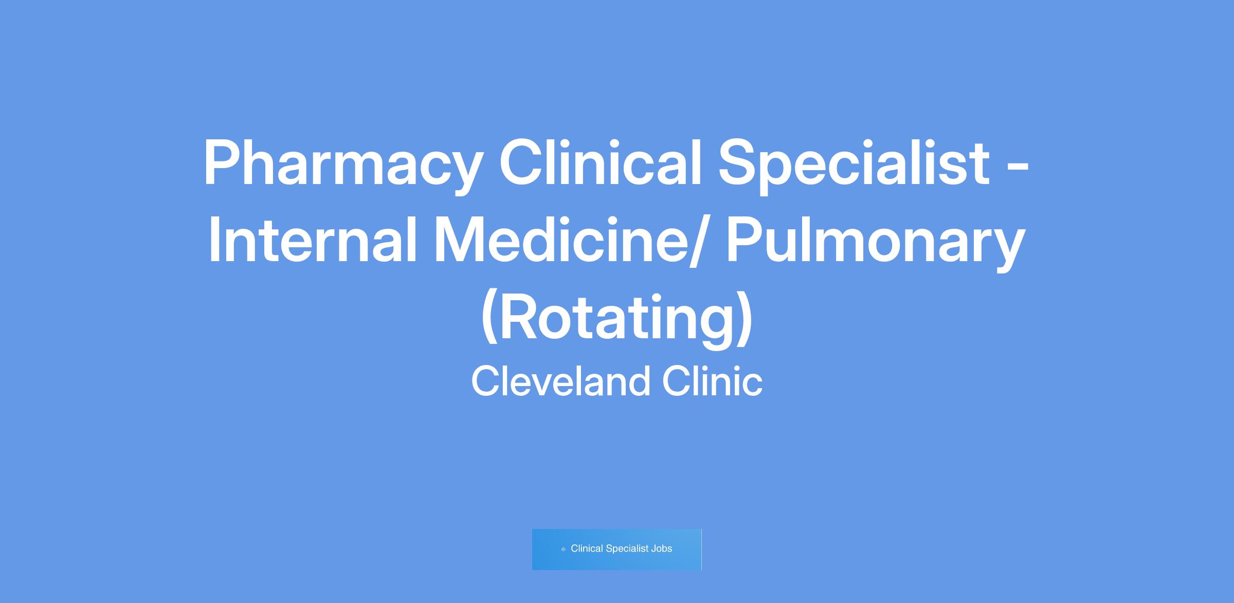 The Cleveland Clinic internal medicine services provide an exciting environment for high quality patient care for a high acuity patient population. Daily responsibilities include decentralized coverage of assigned units and teams, coordination of pharmaceutical care incorporating multidisciplinary involvement, therapeutic drug monitoring, minimization of safety issues, ensuring cost effective pharmacotherapy plans, and medication reconciliation. Collaboration with other healthcare professionals is imperative.