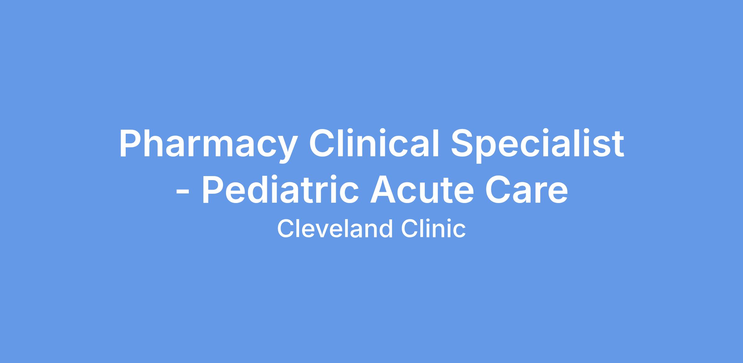 Pharmacy Clinical Specialist - Pediatric Acute Care