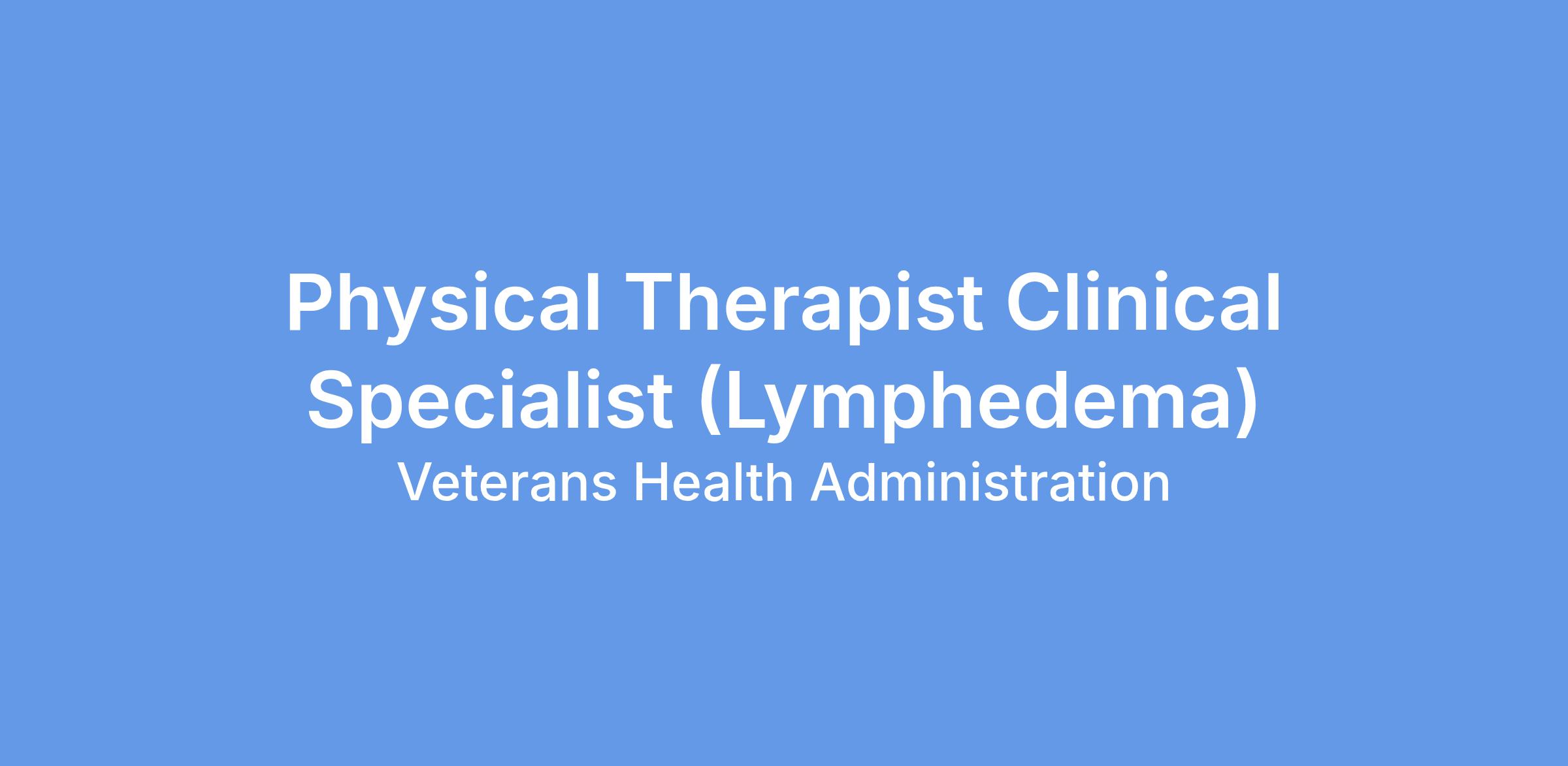 Physical Therapist Clinical Specialist (Lymphedema) GS-13