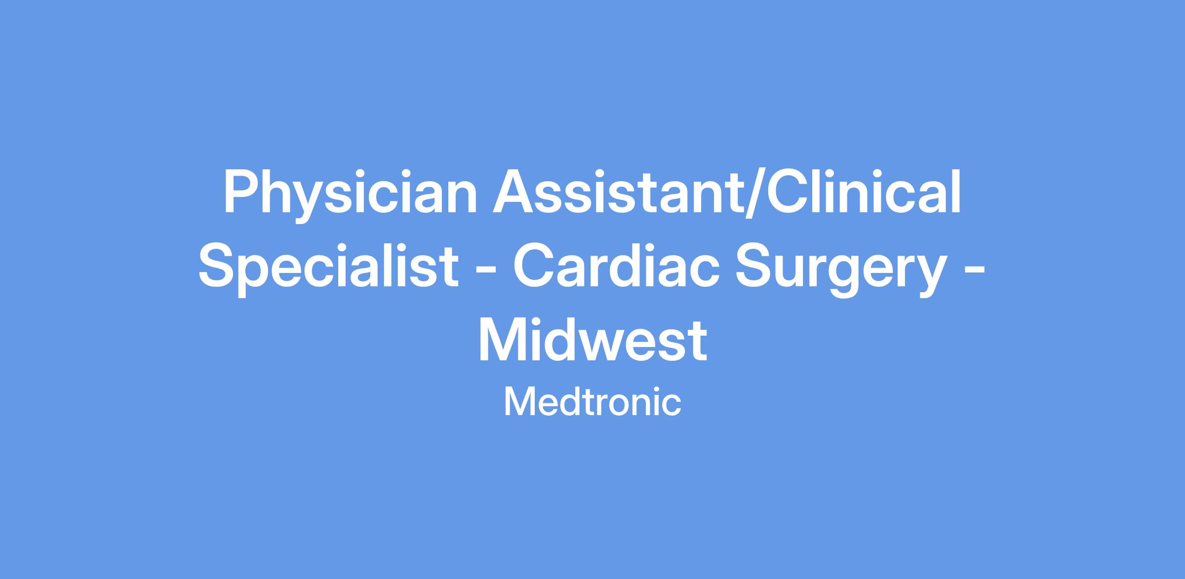 Physician Assistant (PA) Degree with 5+ years of experience supporting cardiac surgery procedures in the OR (10+ years' experience with a Bachelor's) or (8+ years with a Master's).