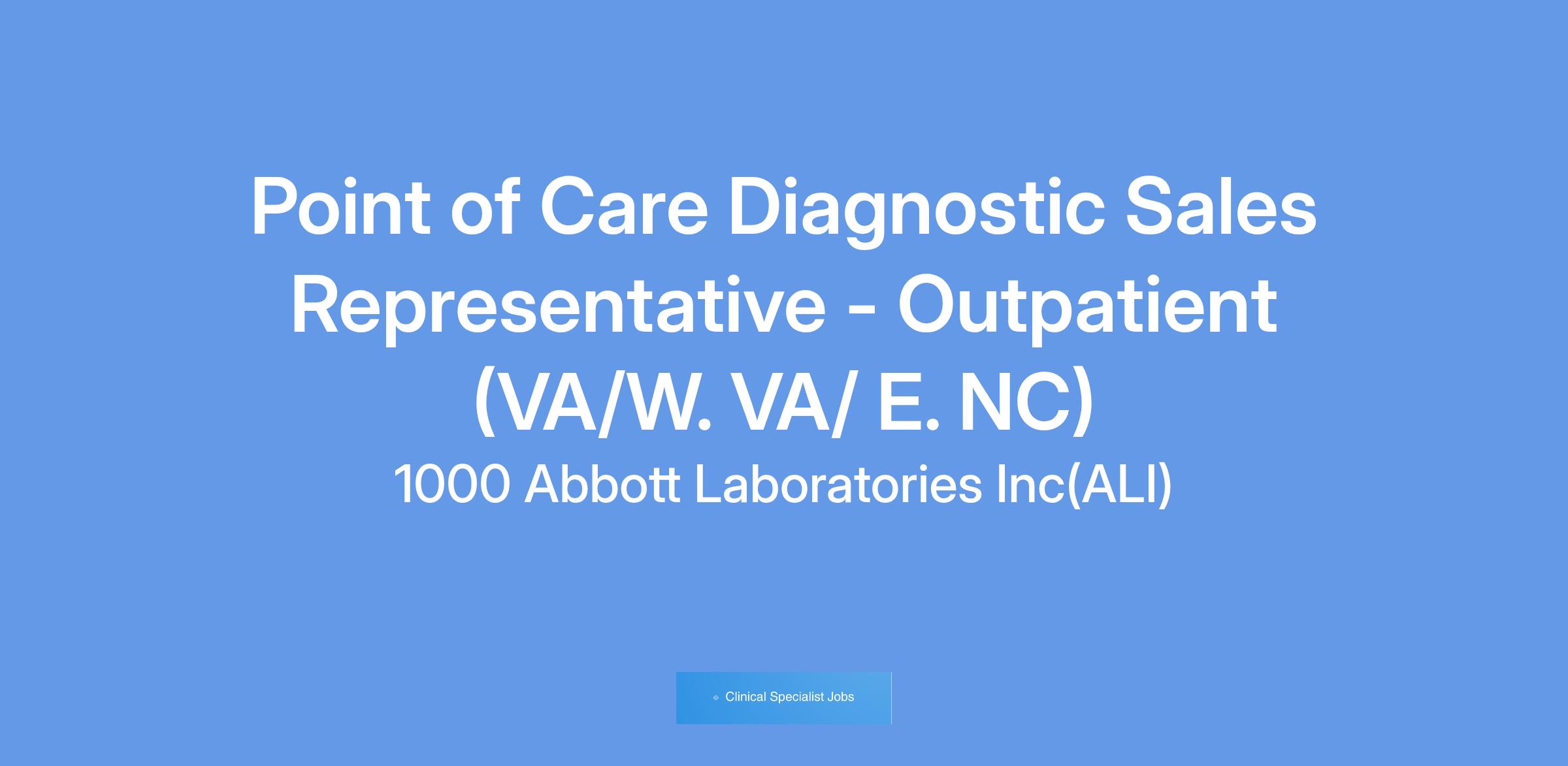 We are hiring a Point of Care Solutions Specialist (Outpatient) in our Abbott Point of Care (APOC) Division selling to outpatient customers covering VA/W. VA/E. NC. The Point of Care Solution Specialist works independently within an assigned territory leading commercial execution to increase market share and drive sustainable growth. Working in a collaborative environment, the Sales Specialist will partner with internal support team members to identify opportunities and create strategies that move sales cycles forward. The position reports to the District Manager and requires up to 50% travel to provide customer-focused service and effectively support business goals.