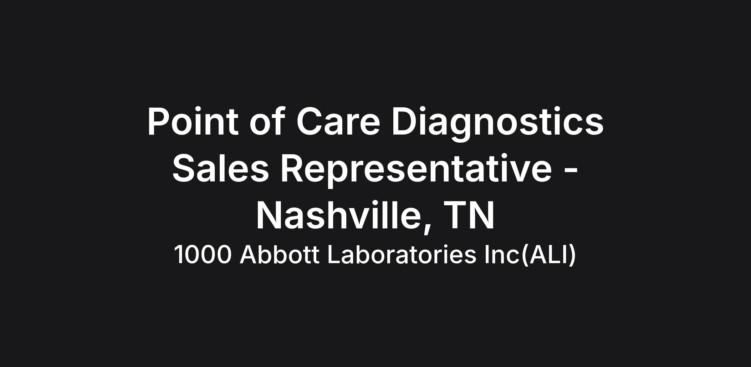 We are hiring a Point of Care Solutions Specialist in our Abbott Point of Care (APOC) Division selling to hospitals in the Nashville, TN territory. The Point of Care Solution Specialist works independently within an assigned territory leading commercial execution to increase market share and drive sustainable growth. Working in a collaborative environment, the Sales Specialist will partner with internal support team members to identify opportunities and create strategies that move sales cycles forward. The position reports to the District Manager and requires up to 50% travel to provide customer-focused service and effectively support business goals.