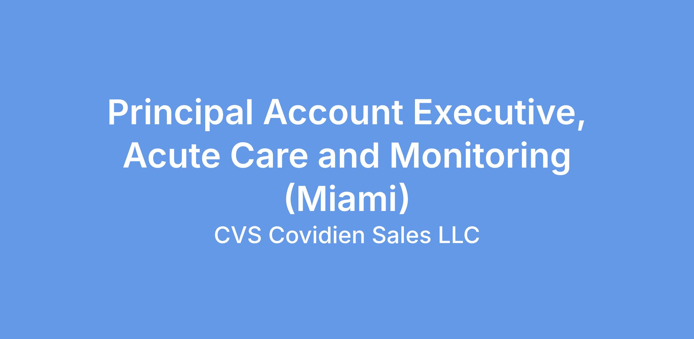 We have an exciting opportunity for a Principal Account Executive to join our ACM sales team. In this role, you will be driving sales growth and market share by promoting our Respiratory & Monitoring Solutions portfolio to key clinical leaders in the ICU, General Care Floors, and Procedural Sedation departments.