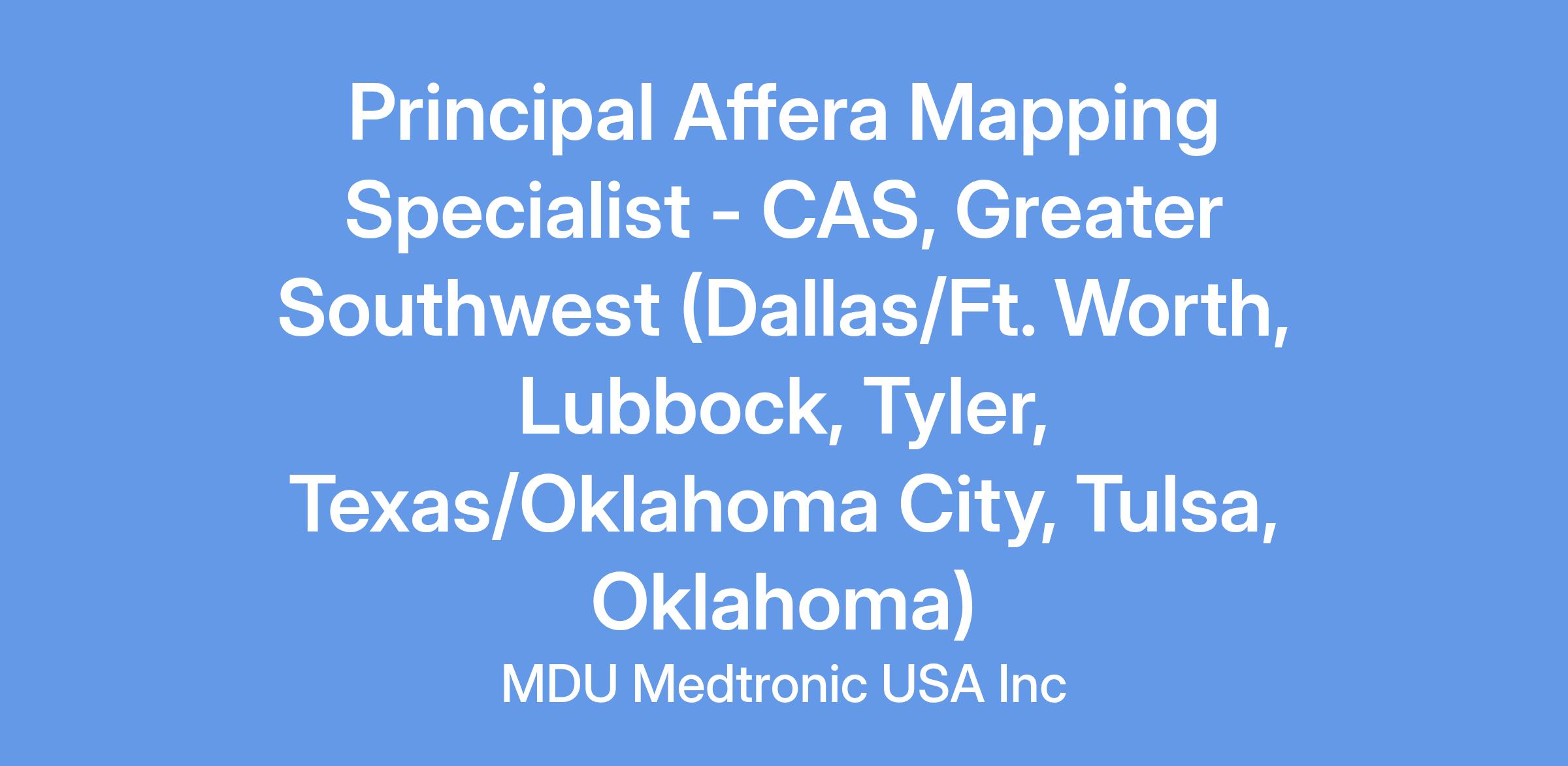 Principal Affera Mapping Specialist - CAS, Greater Southwest (Dallas/Ft. Worth, Lubbock, Tyler, Texas/Oklahoma City, Tulsa, Oklahoma)