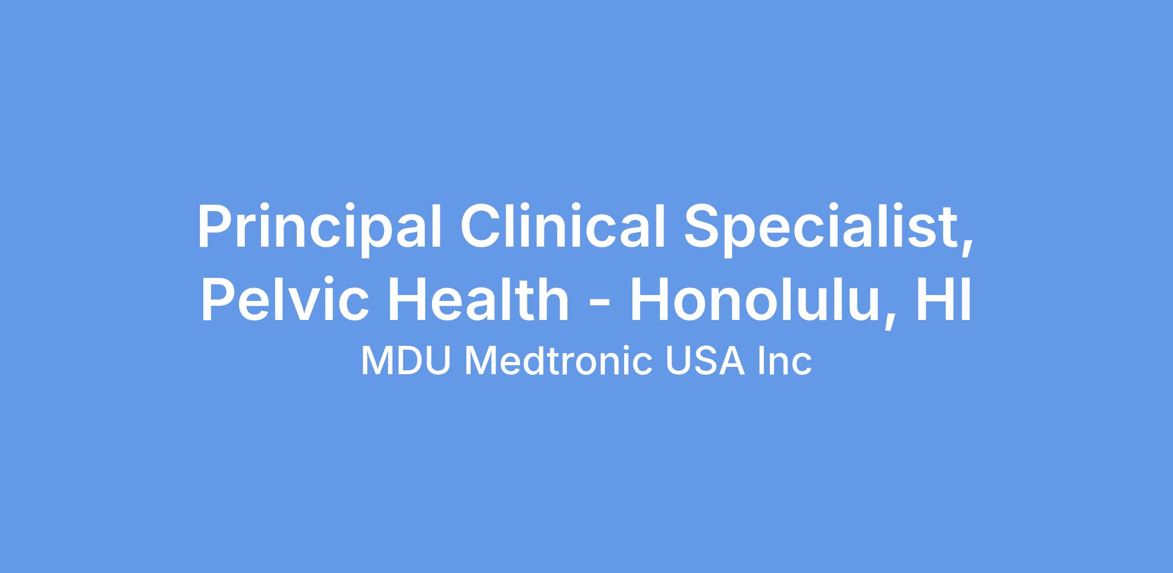 At Medtronic, the Principal Clinical Specialist supports the Pelvic Health Therapy groups in the areas of surgical coverage, follow-up, support, troubleshooting, customer service and education within a territory. In certain instances, this role may be engaged in basic market development activities depending upon the needs of the assigned territory.