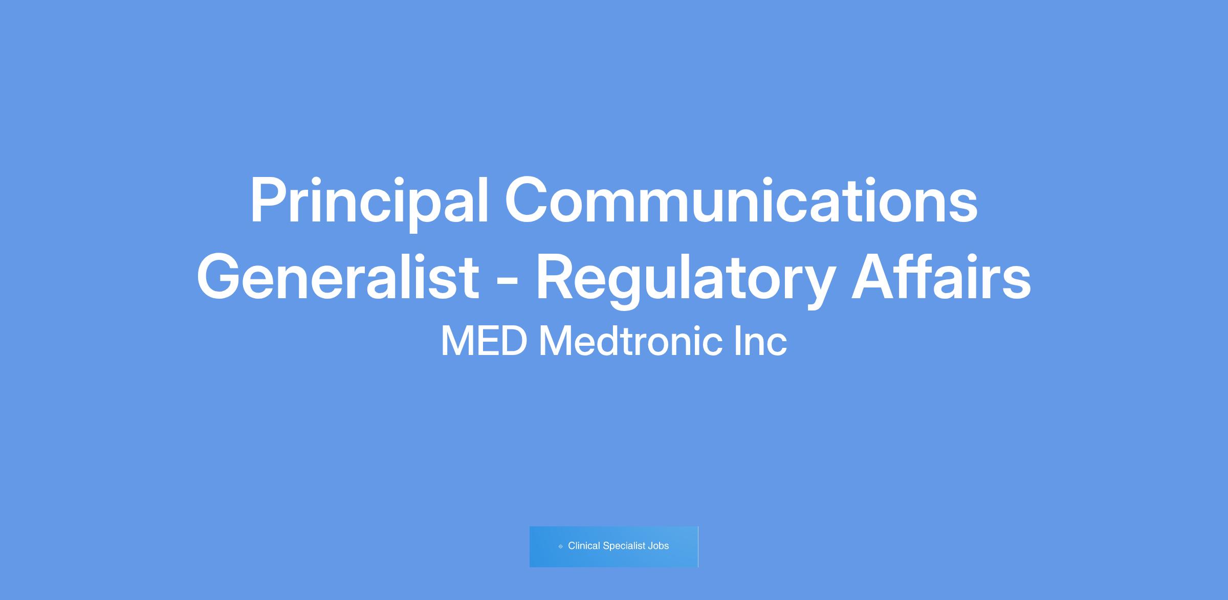 The Medtronic Regulatory Affairs team is seeking a dynamic and experienced communications professional to join our Clinical Research, Medical Science, and Regulatory Affairs organization. As a Principal Communications Generalist, you will collaborate with leadership, the strategy and policy team, and cross-functional partners to develop and deliver communications that advance the vision and strategy of the Regulatory function. In this role, you’ll lead diverse, high-impact projects and partner with stakeholders across Medtronic to ensure clear, consistent, and compelling messaging.