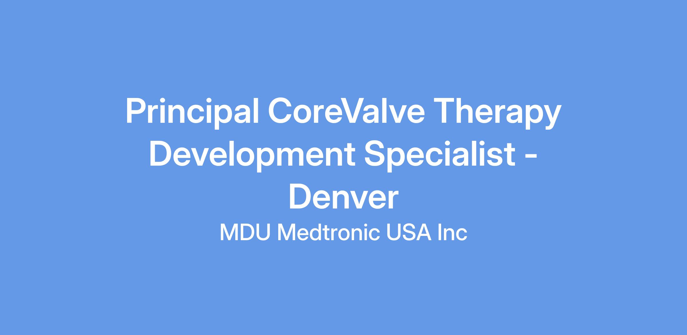 The CoreValve Principal Therapy Development Specialist (TDS) provides technical, clinical, educational and sales support to ensure safe adoption and growth of the Medtronic CoreValve System and future catheter-based therapy technologies. The CoreValve Therapy Development Specialist works closely with implanting teams and the Medtronic Catheter-Based Therapies (CBT) and CVG field organizations to drive procedural and practice success.